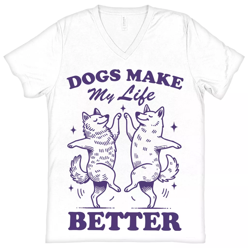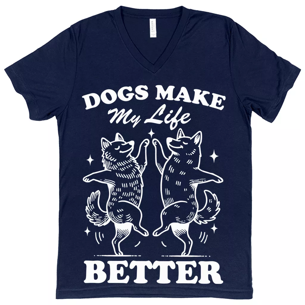 Dogs Make My Life Better V-Neck T-Shirt – Cute Dogs Basic T-Shirt – Vintage Animal Tee
