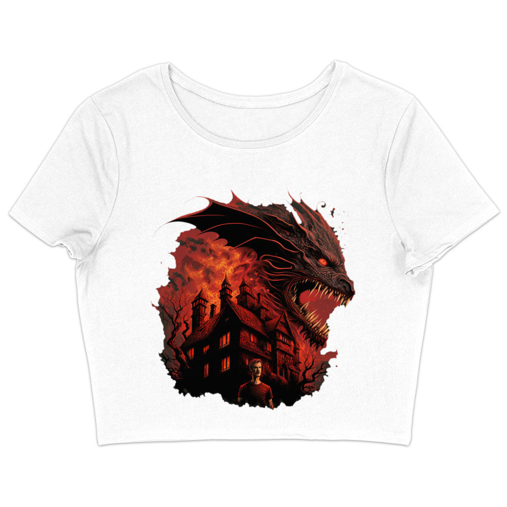 Dragon Graphic Women’s Cropped T-Shirt – Warrior Crop Top – Cool Design Crop Tee Shirt
