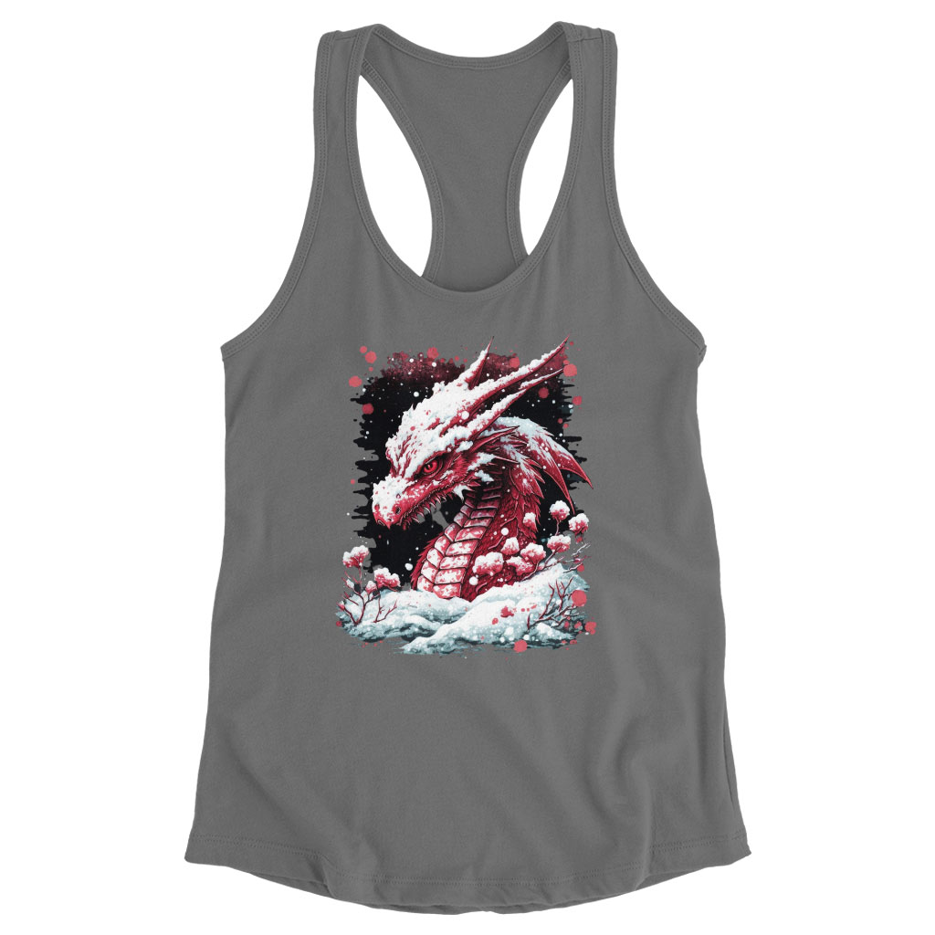 Dragon Print Racerback Tank - Snow Tank - Illustration Workout Tank Clothing Tanks Color : Black|Gray|White