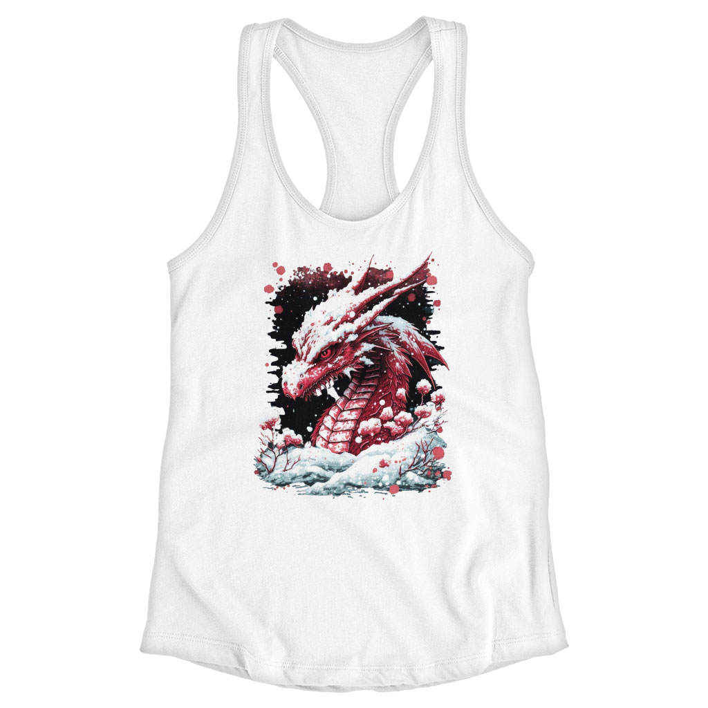 Dragon Print Racerback Tank – Snow Tank – Illustration Workout Tank