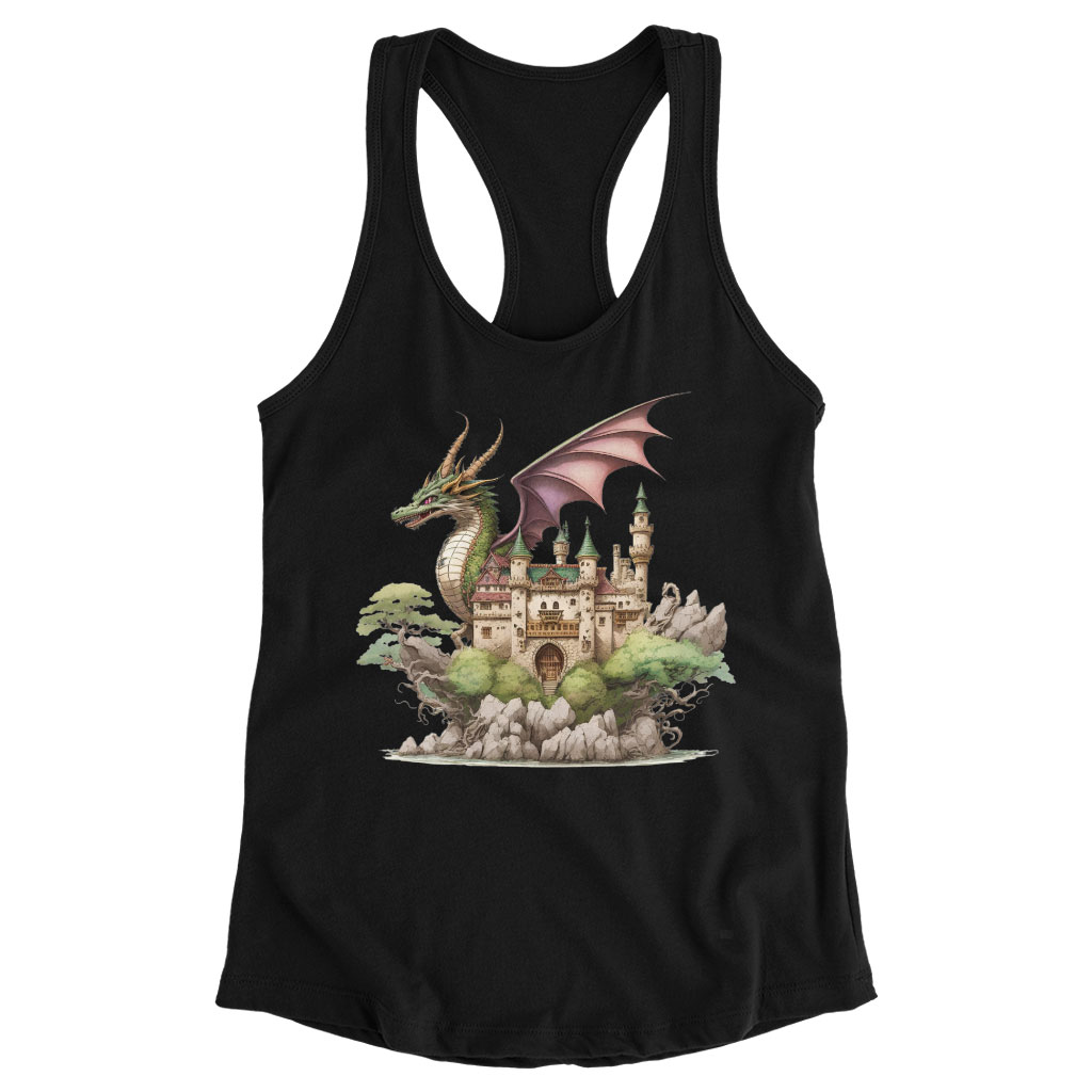 Dragon Racerback Tank - Castle Tank - Cute Dragon Workout Tank Clothing Tanks Color : Black|Gray|White