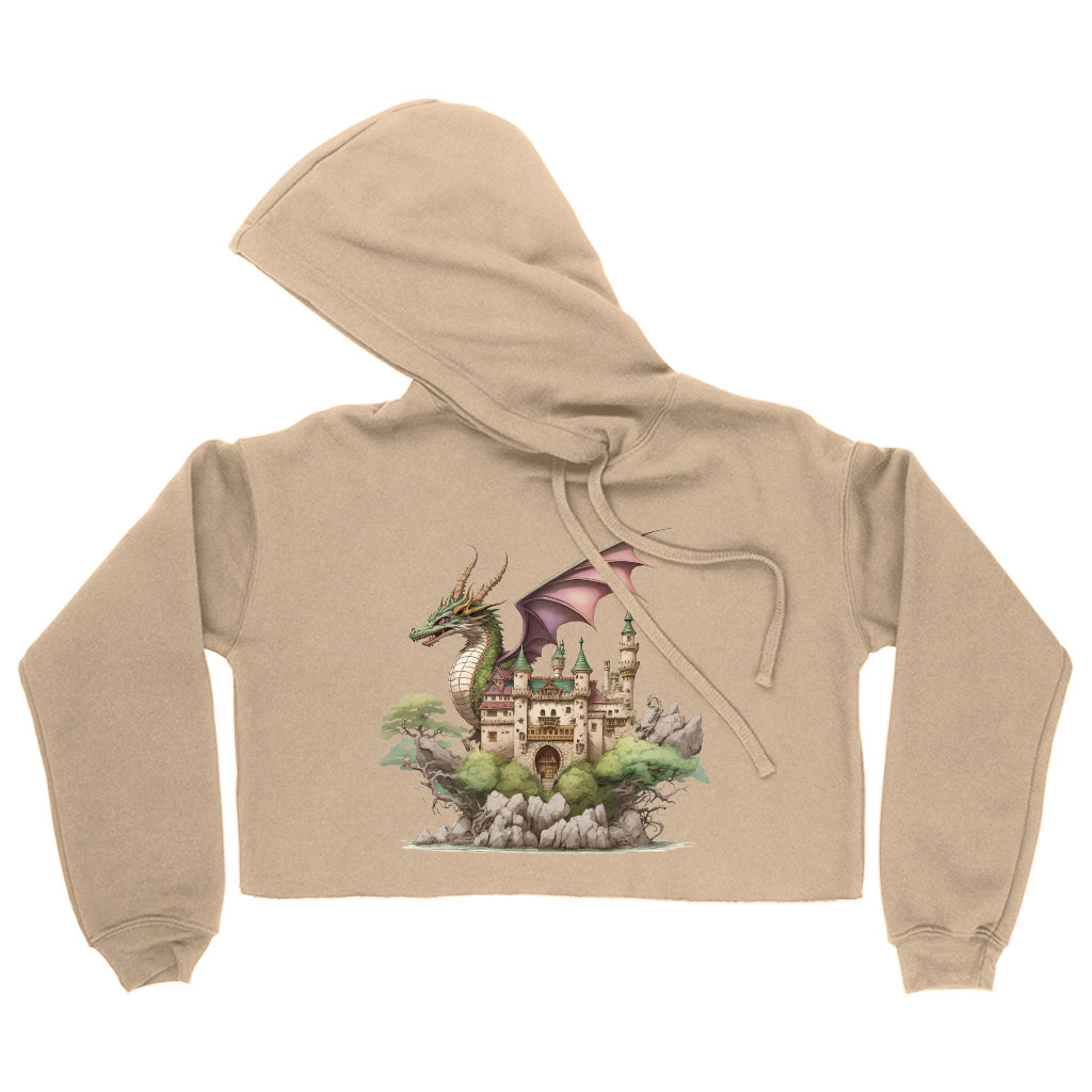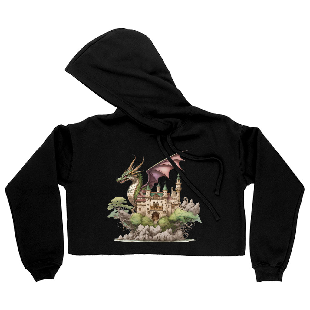 Dragon Women’s Cropped Hoodie – Castle Cropped Hoodie – Cute Dragon Hooded Sweatshirt