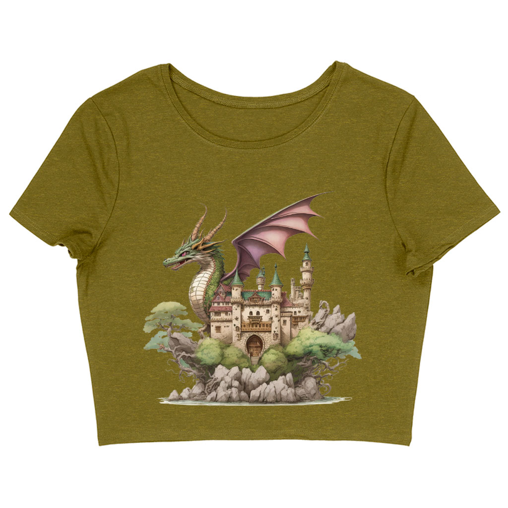 Dragon Women's Cropped T-Shirt - Castle Crop Top - Cute Dragon Crop Tee Shirt Clothing T-Shirts Color : Black|Heather Olive|White