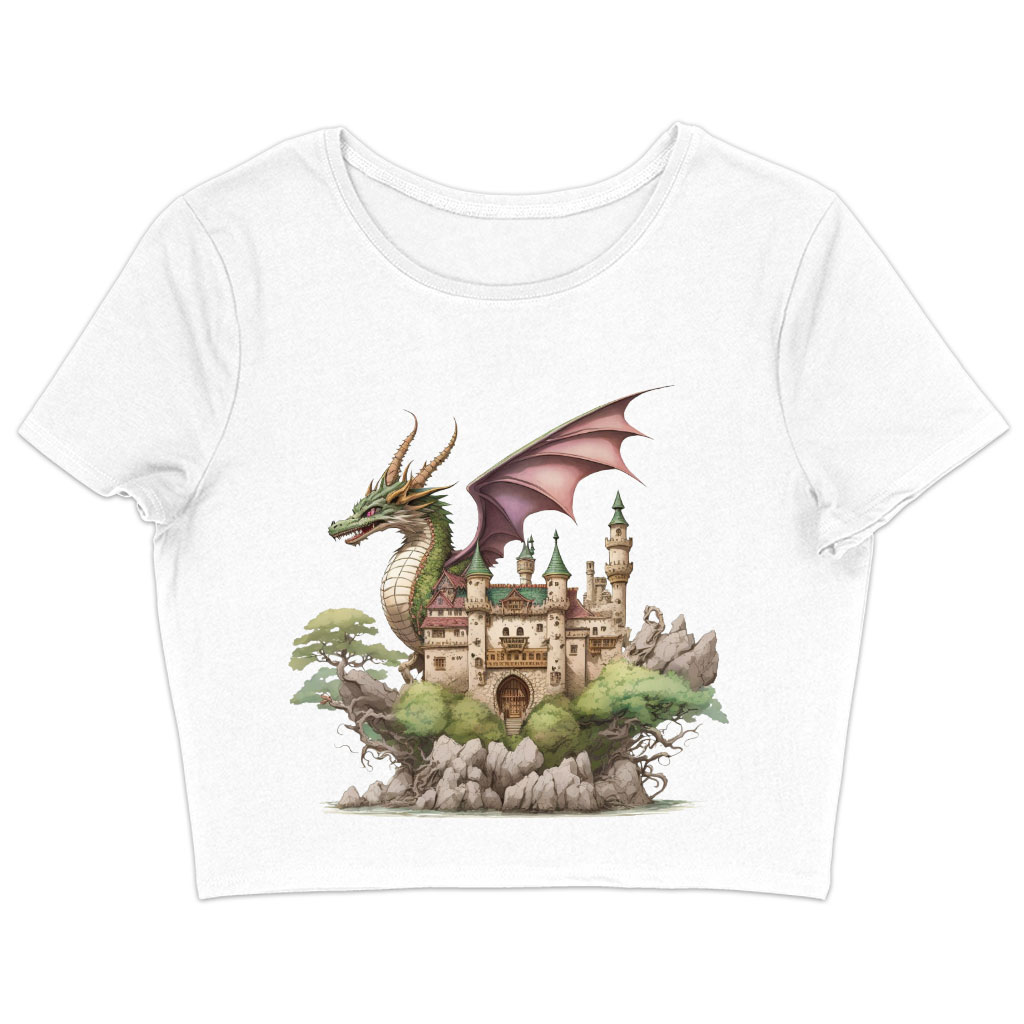 Dragon Women’s Cropped T-Shirt – Castle Crop Top – Cute Dragon Crop Tee Shirt