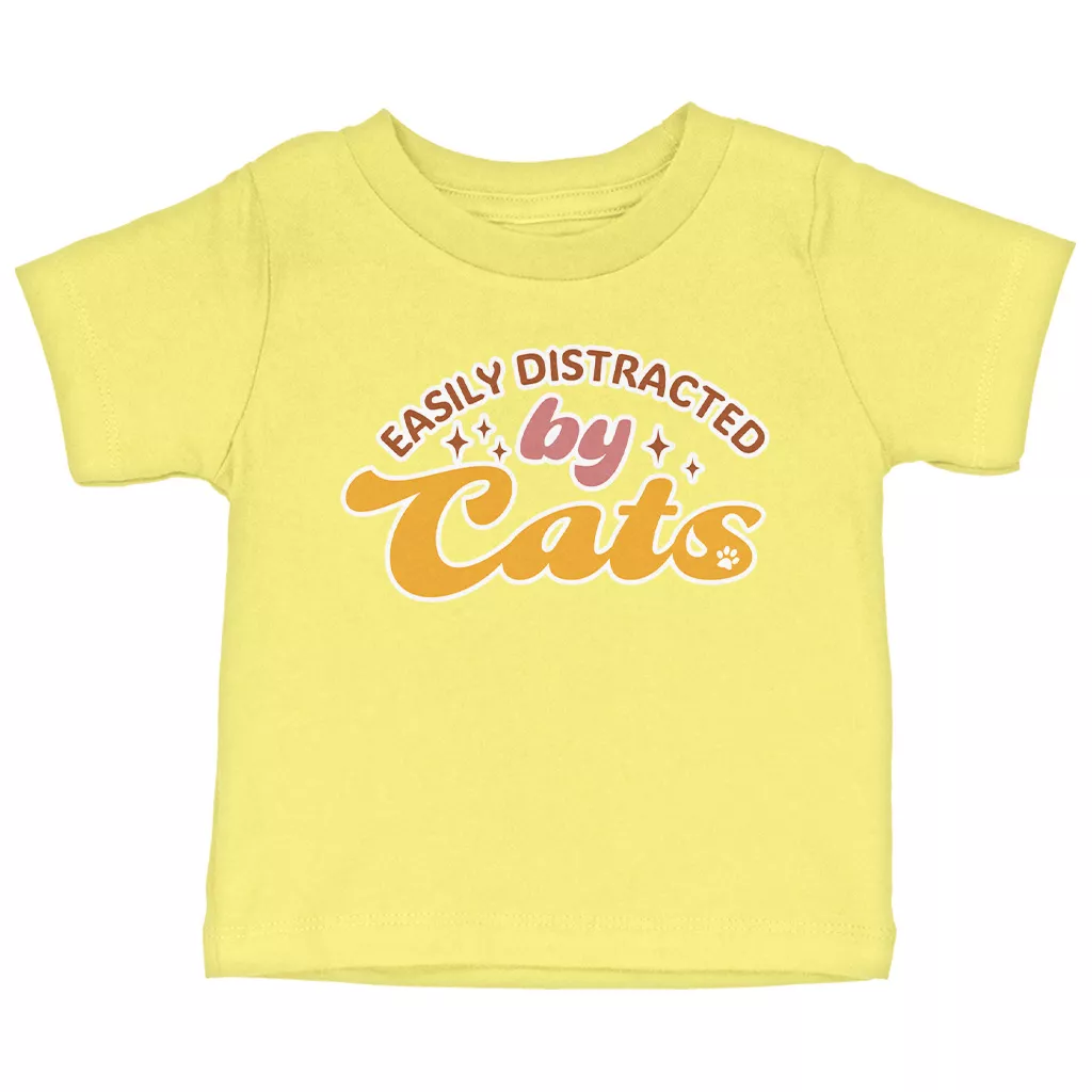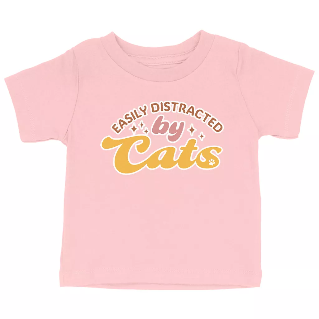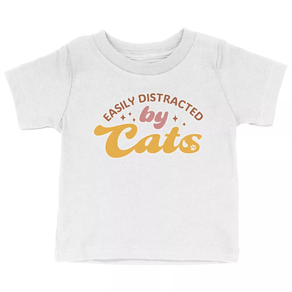 Easily Distracted By Cats Baby T-Shirt – Cat Lover T-Shirt for Kids – Funny Cat Short Sleeve Tee