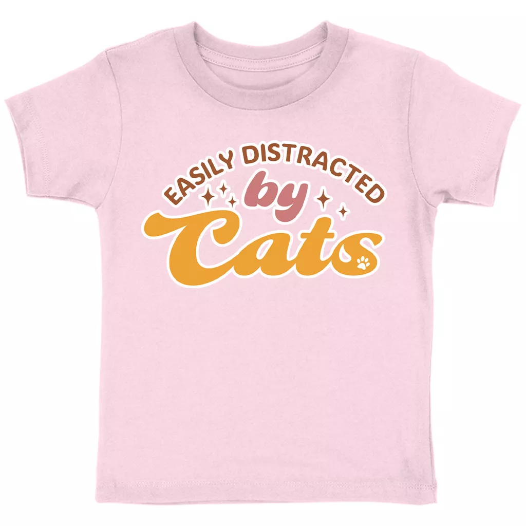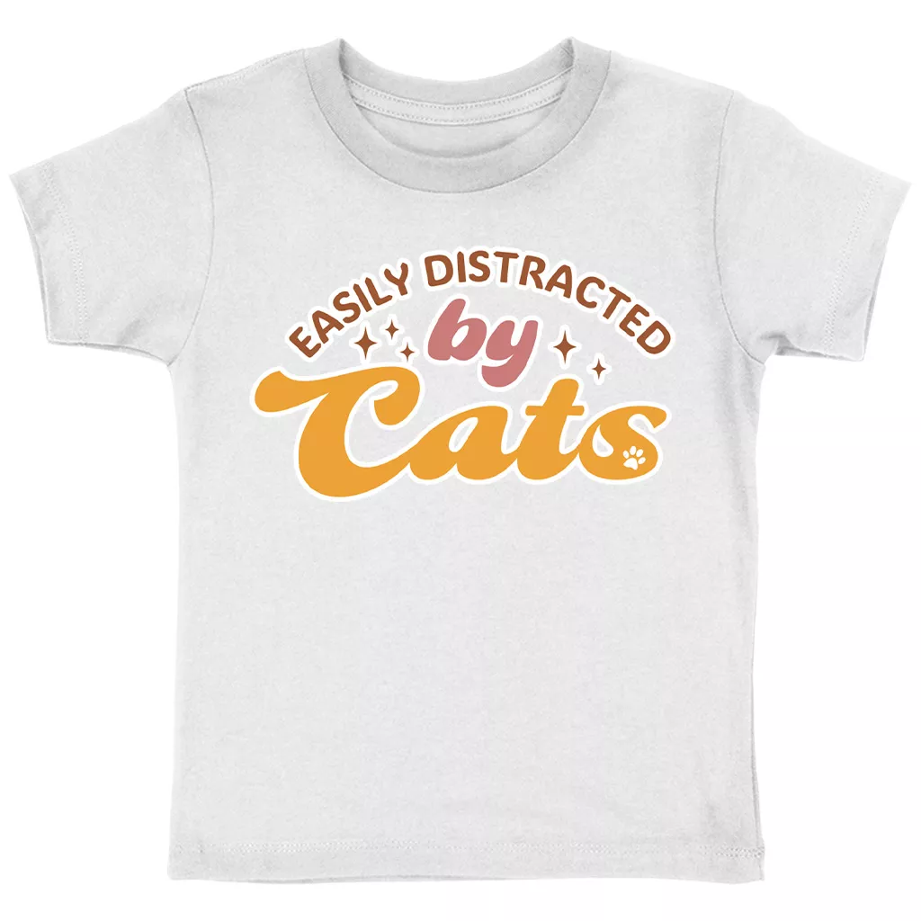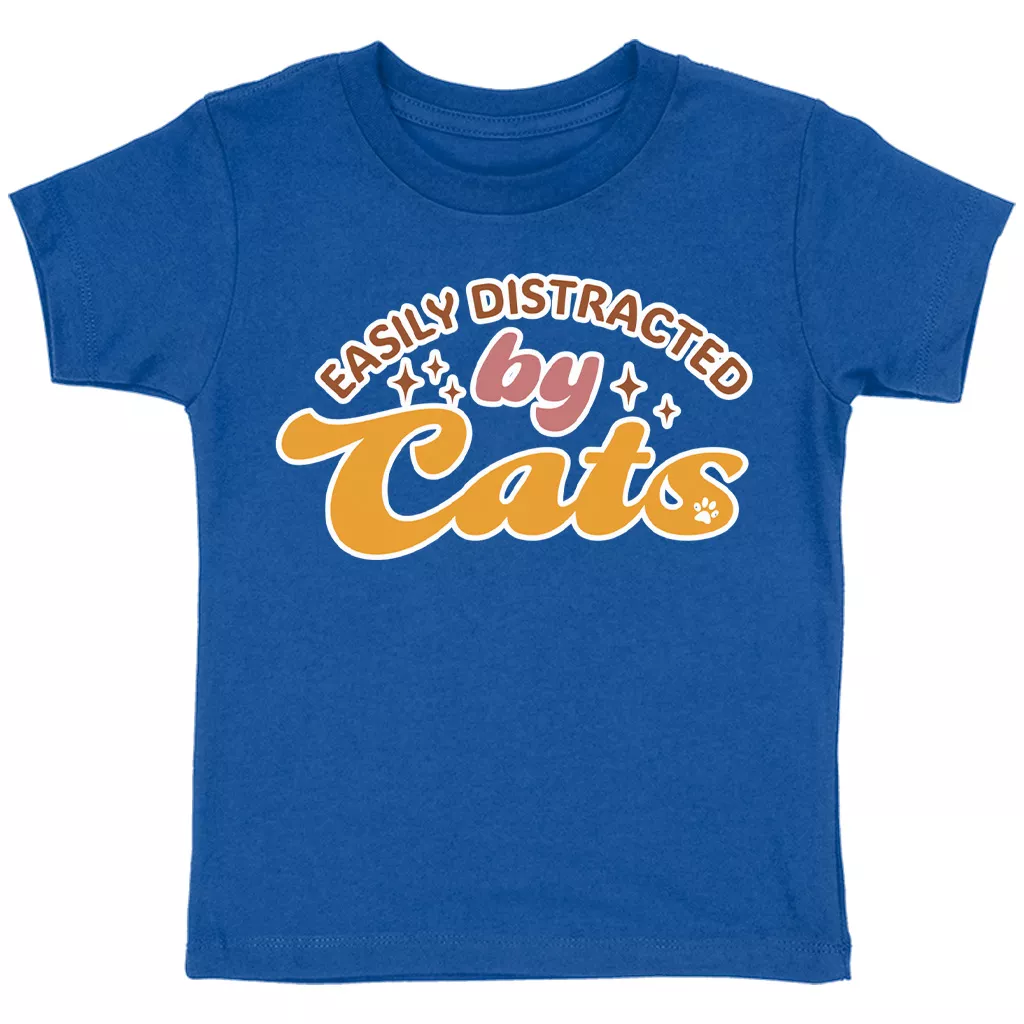 Easily Distracted By Cats Toddler Cotton T-Shirt – Funny Cat Short Sleeve Tee – Cat Lover T-Shirt for Kids