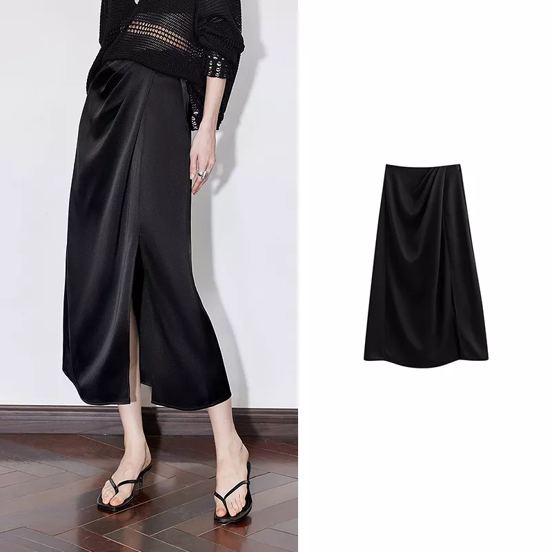 This elegant black skirt is the ultimate choice for spring and summer events. Whether you’re headed to a formal gathering, a dinner date, or a cocktail party, this skirt offers both comfort and sophistication. Its classic black hue allows for effortless pairing with any top, making it a versatile option for a range of occasions. The open split adds a hint of allure, making it especially perfect for evening events where you want to stand out in style.