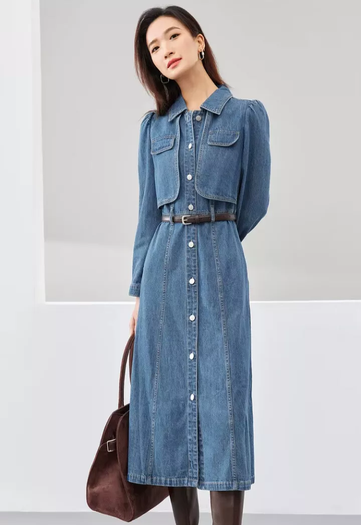 If you’re looking for a chic and effortless outfit that transitions seamlessly from day to night, this denim midi dress is the perfect choice. Order now and redefine your fall fashion with this statement piece!