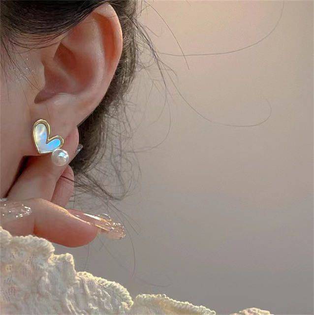 Elegant Pearl Shell Love Heart Stud Earrings