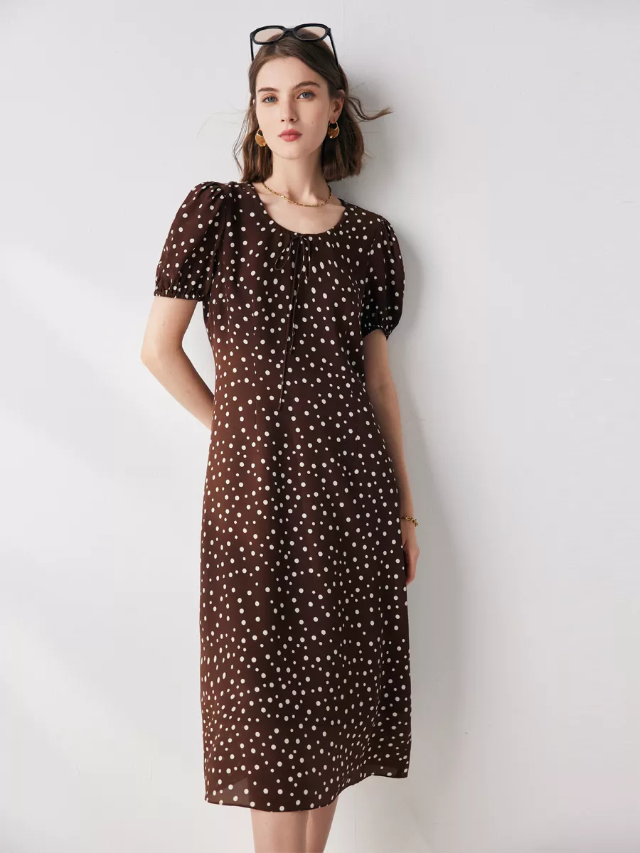 Elegant Silk Polka Dot Dress