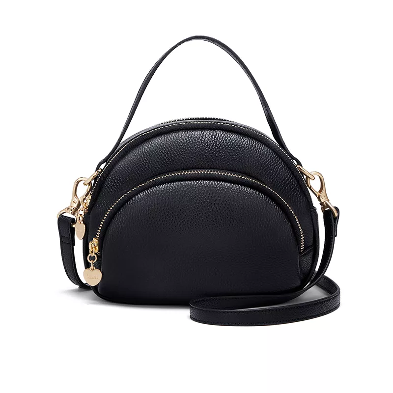 Elegant Small Leather Round Crossbody Shoulder Bag
