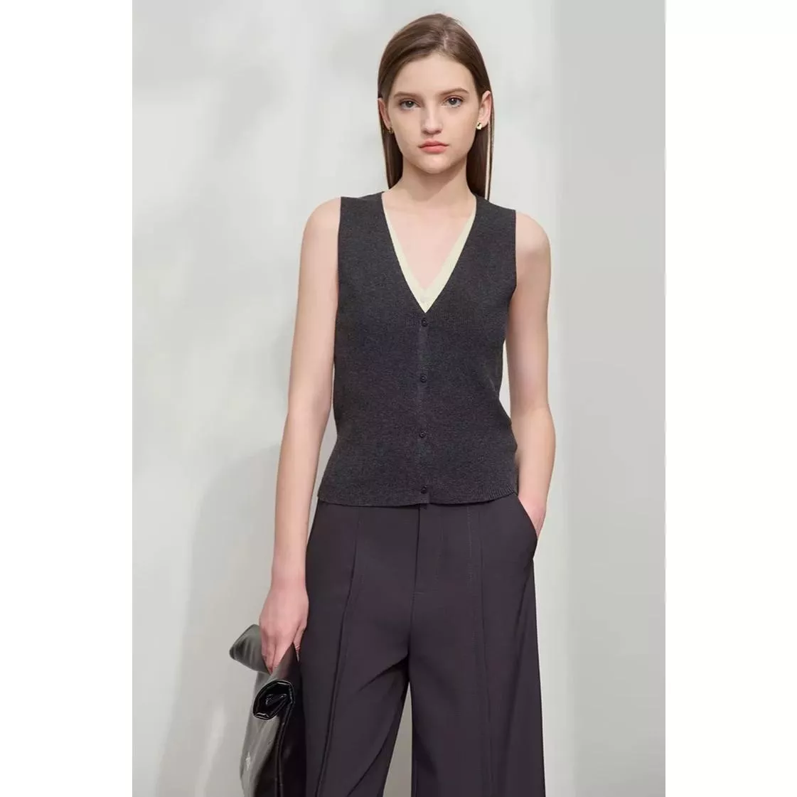 Elegant V-Neck Sleeveless Vest – Minimalist Splicing Two-Piece Look for Spring