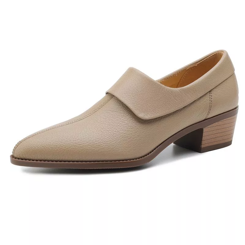 Elegant Women’s Genuine Leather Chunky Heel Pumps with Zipper
