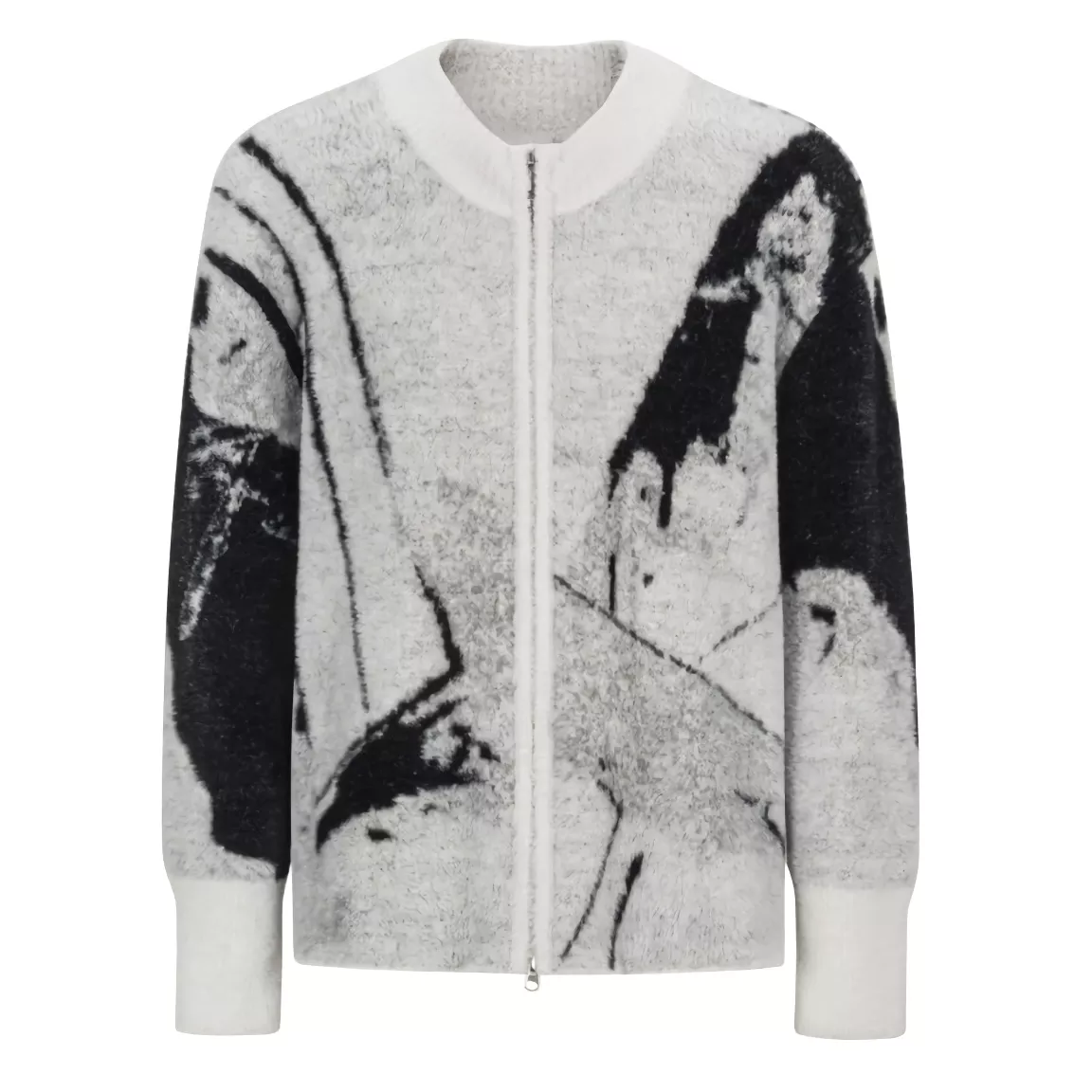 Embroidery Men’s Cardigan Sweater with Gradient Color Zipper