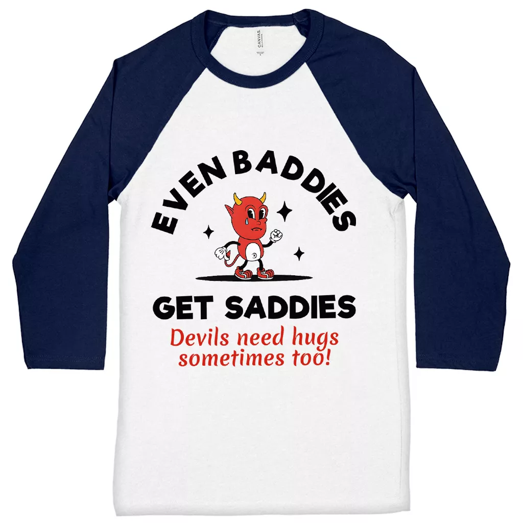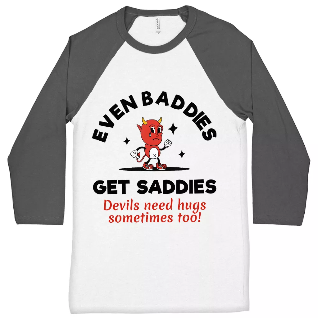 Even Baddies Get Saddies Baseball T-Shirt – Mental Health 3/4 Sleeve – Retro Raglan Jersey Shirt