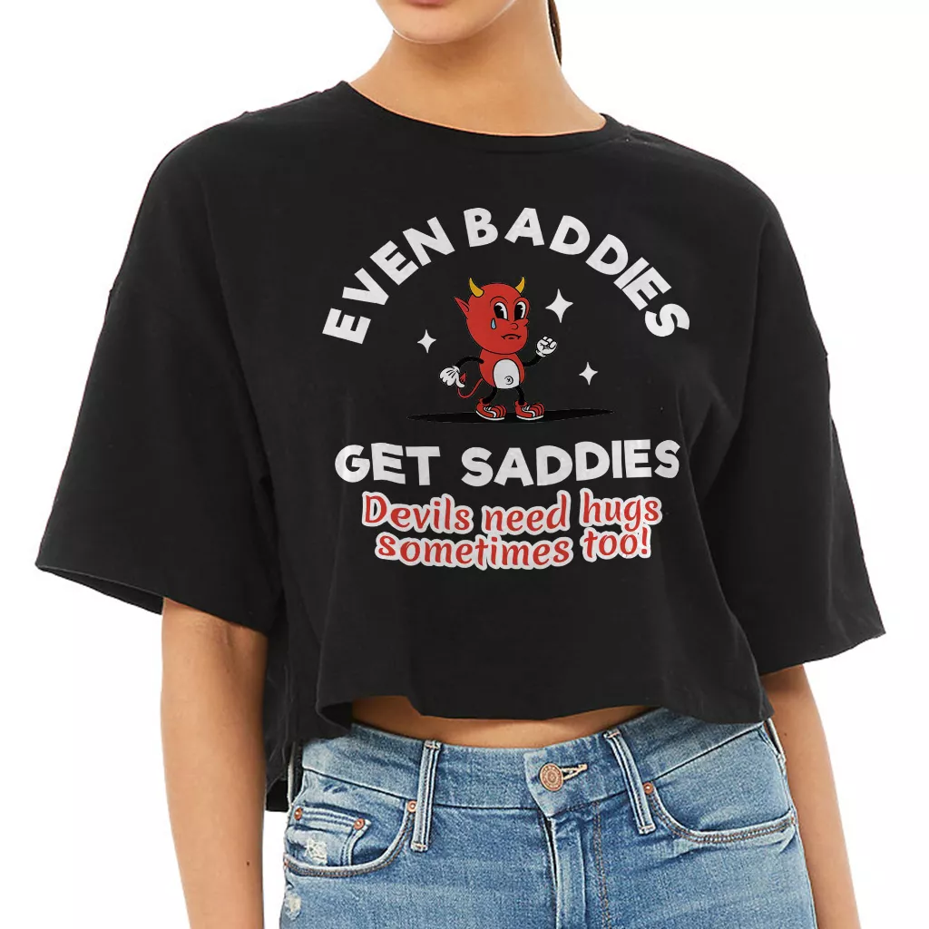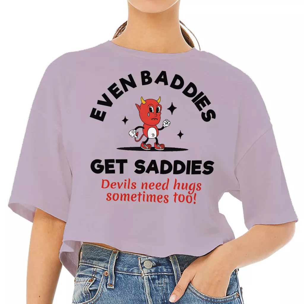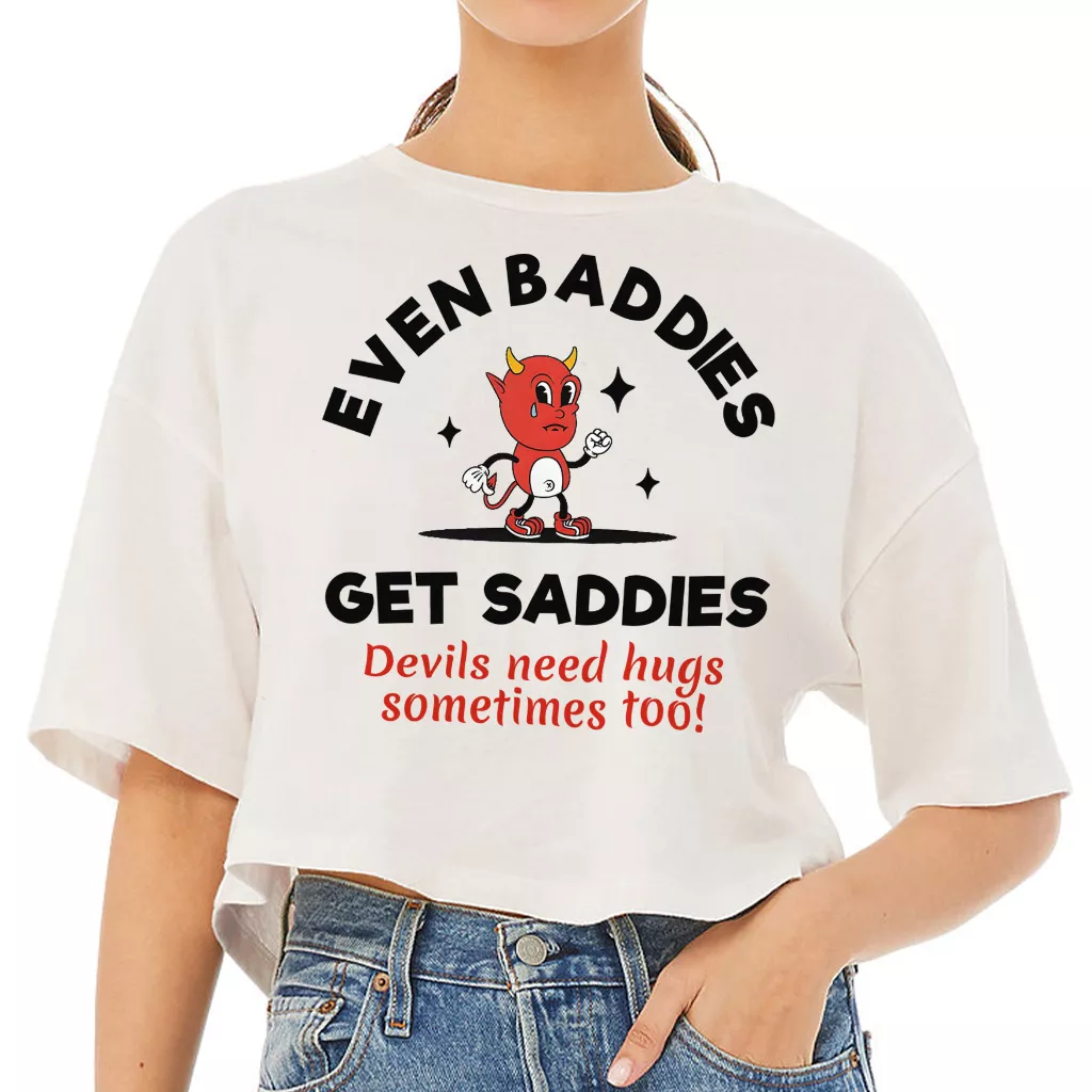 Even Baddies Get Saddies Cropped T-Shirt – Retro Trendy Tee – Mental Health Women’s Basic T-Shirt