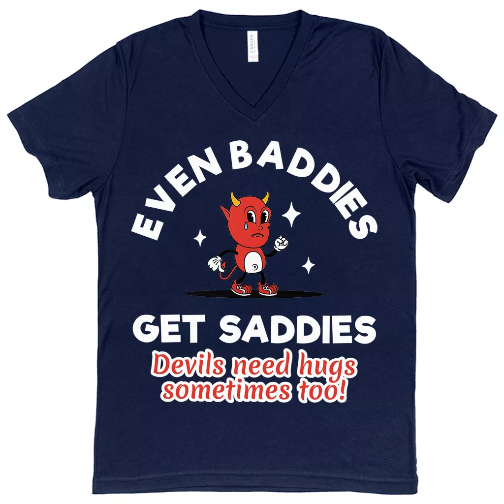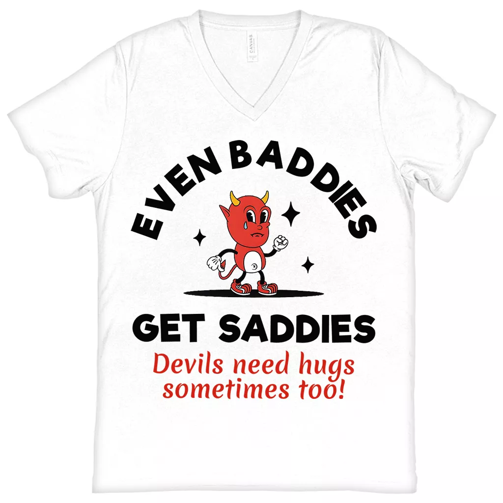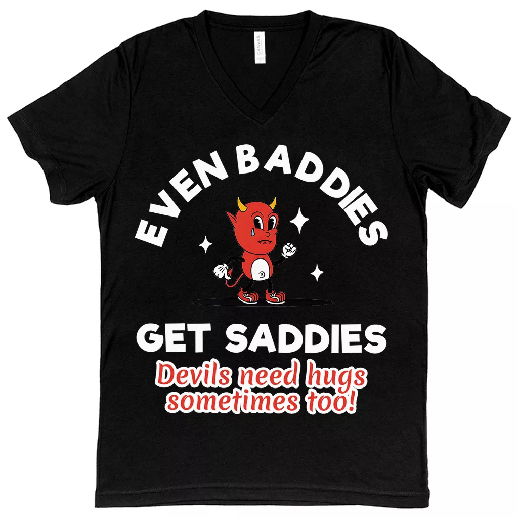 Even Baddies Get Saddies V-Neck T-Shirt – Mental Health Basic T-Shirt – Retro Tee