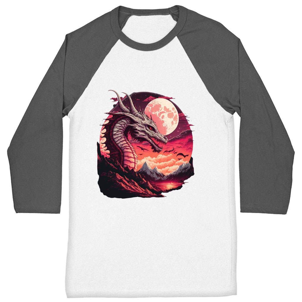 Fantasy Dragon Baseball T-Shirt – Mountain Print T-Shirt – Moon Tee Shirt