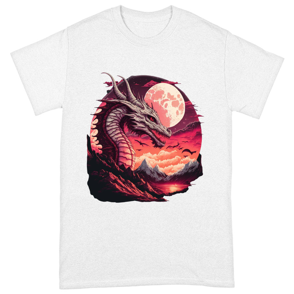 Fantasy Dragon Heavy Cotton T-Shirt – Mountain Print Tee Shirt – Moon T-Shirt