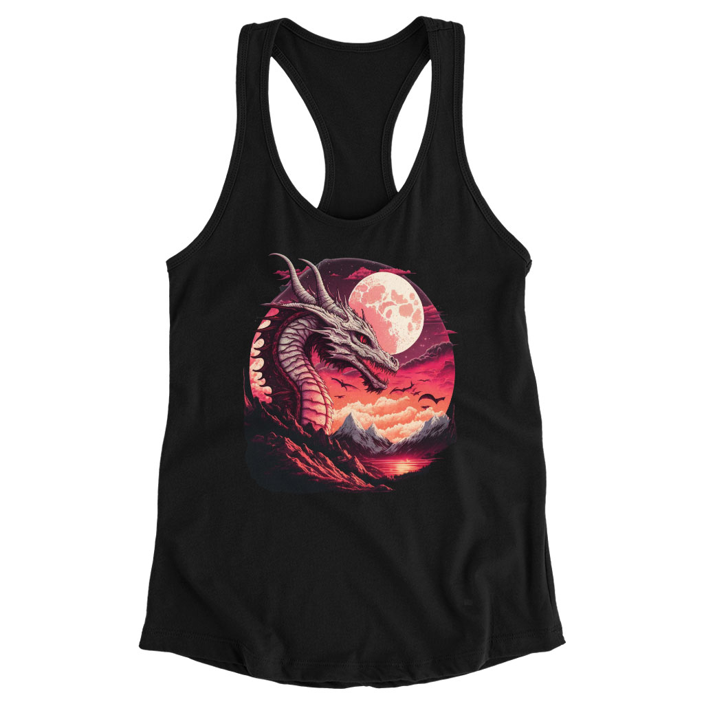 Fantasy Dragon Racerback Tank – Mountain Print Tank – Moon Workout Tank