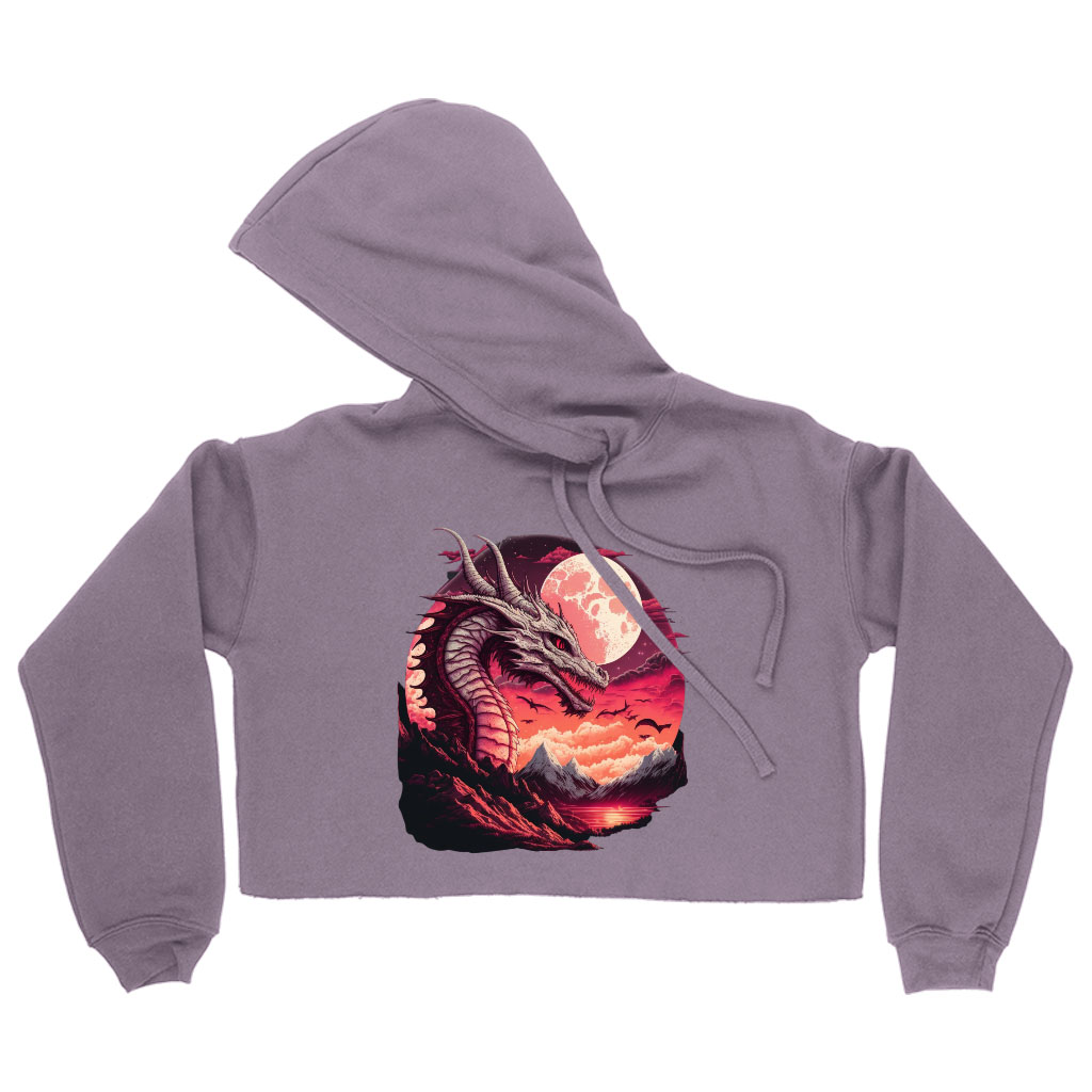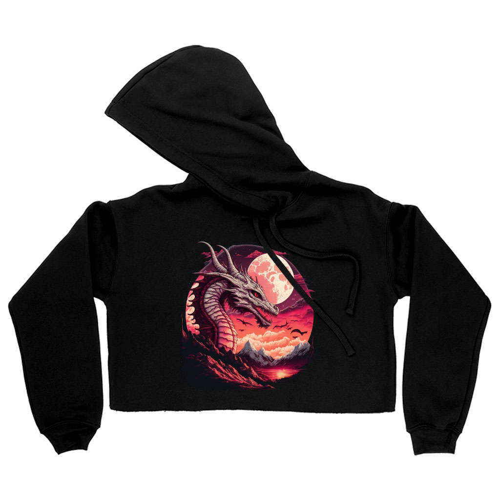 Fantasy Dragon Women’s Cropped Hoodie – Mountain Print Cropped Hoodie – Moon Hooded Sweatshirt