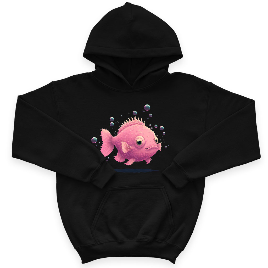 Fish Design Kids’ Sponge Fleece Hoodie – Kawaii Print Kids’ Hoodie – Themed Hoodie for Kids
