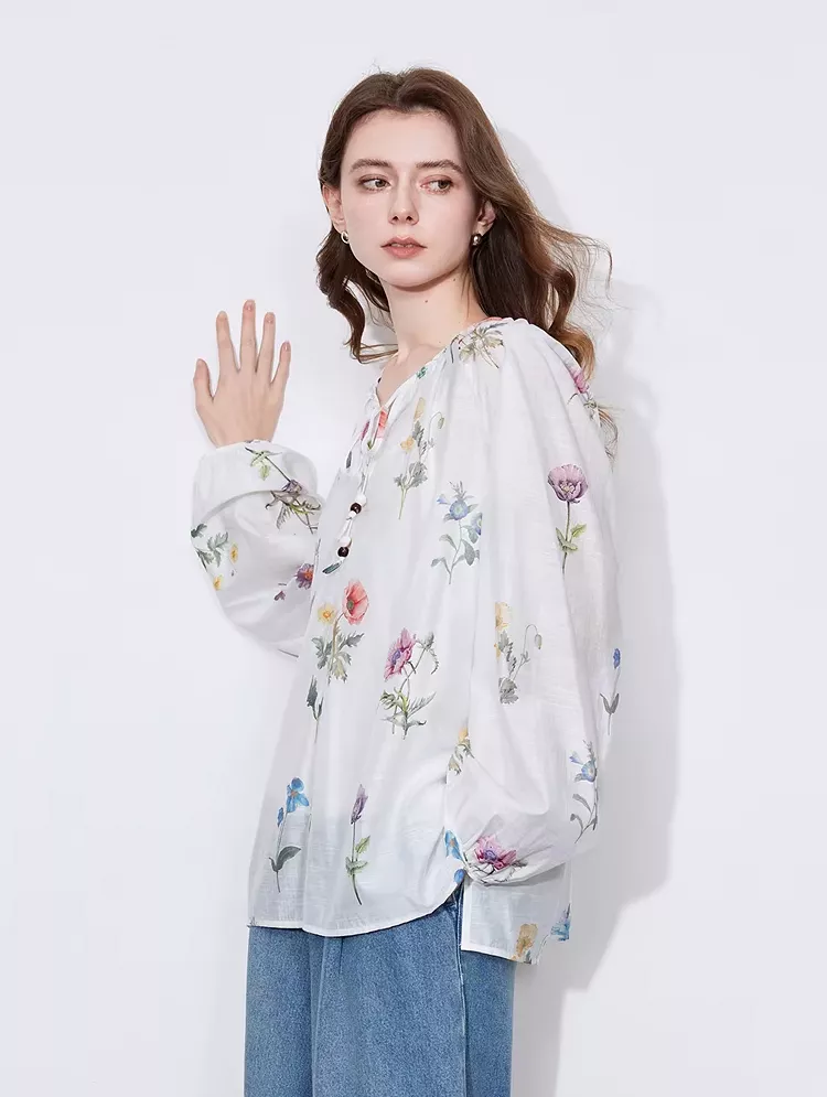 This floral blouse combines the best of both style and comfort. Its lightweight construction makes it perfect for those warm spring and summer days, keeping you cool while looking effortlessly chic. The loose fit ensures comfort without sacrificing style, allowing you to wear it all day, whether you’re at work or out for a casual day with friends. The lantern sleeves and floral print bring a fun, fresh element to your outfit, making it ideal for adding a touch of elegance to your everyday wear.