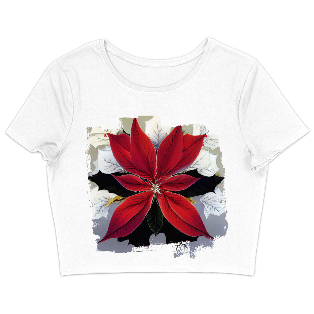 Flower Design Women’s Cropped T-Shirt – Printed Crop Top – Themed Cropped Tee