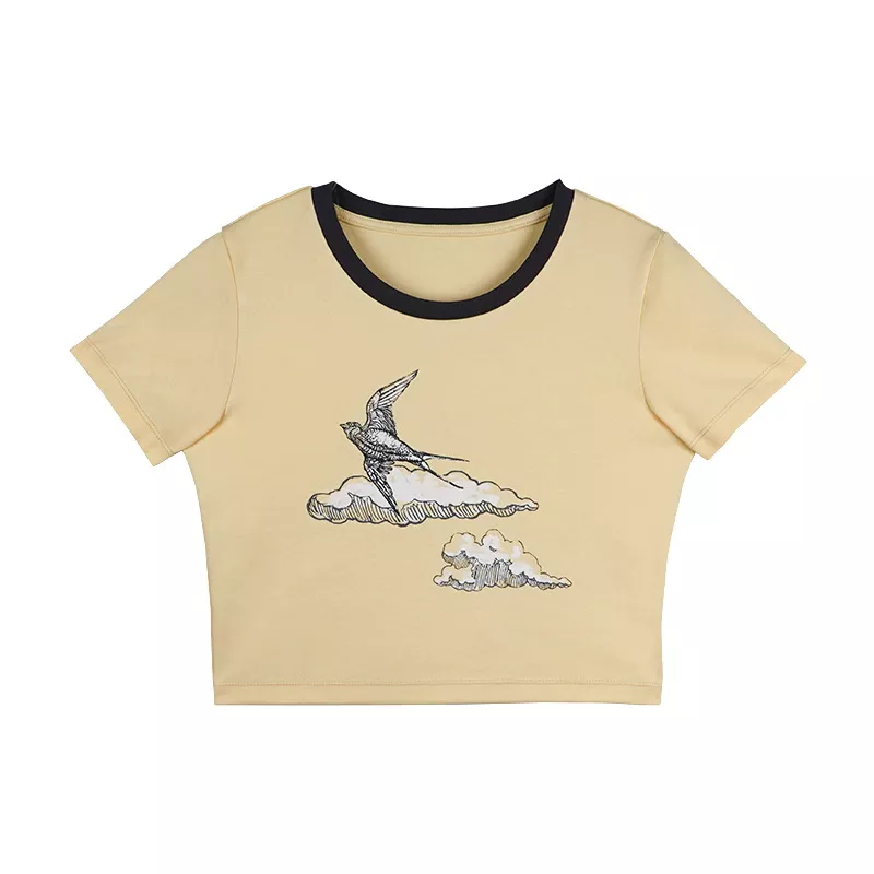 Flying Swallow Clouds Print Cotton Crop Top for Women