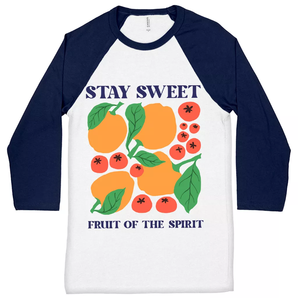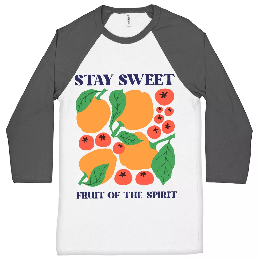 Fruit Of the Spirit Baseball T-Shirt is proudly made with 7x less water than average manufacturers, in recycle-friendly facilities that also guarantee zero sweatshop conditions. Boho 3/4 Sleeve is designed and printed in California.