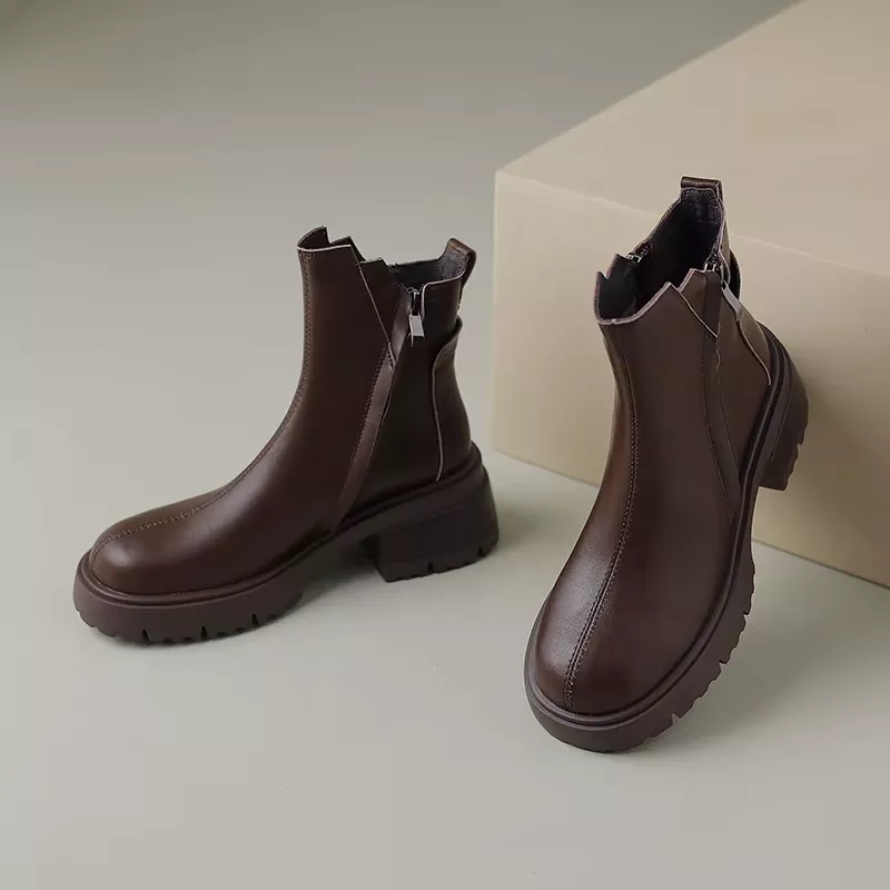 Step into timeless fashion with these genuine leather ankle boots, designed to blend vintage aesthetics with modern comfort. Featuring a square heel and a subtle platform, these boots add just the right amount of height while ensuring all-day comfort. Whether you’re dressing up for an evening out or adding a touch of sophistication to your casual wear, these boots are the perfect choice for any occasion.