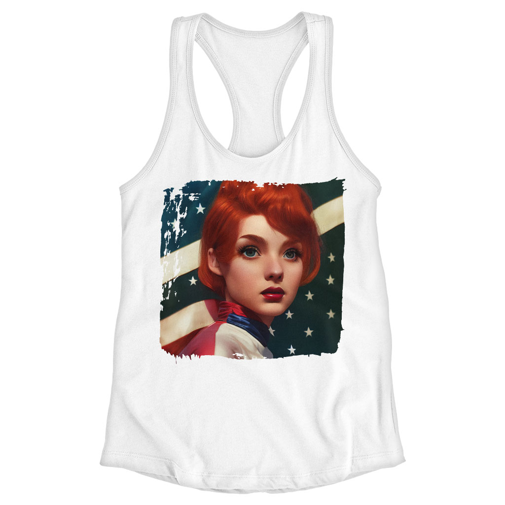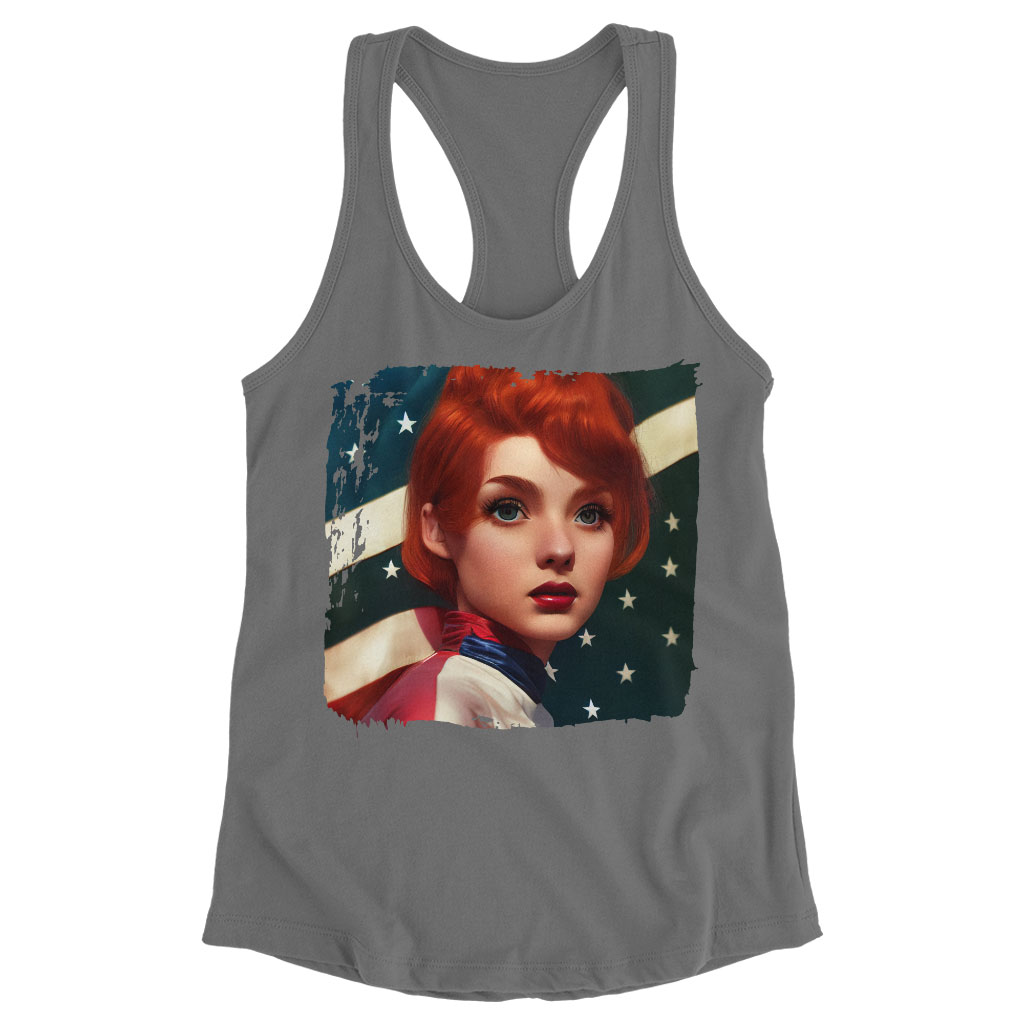 Girl Red Hair American Flag Racerback Tank – Art Tank – Cool Workout Tank