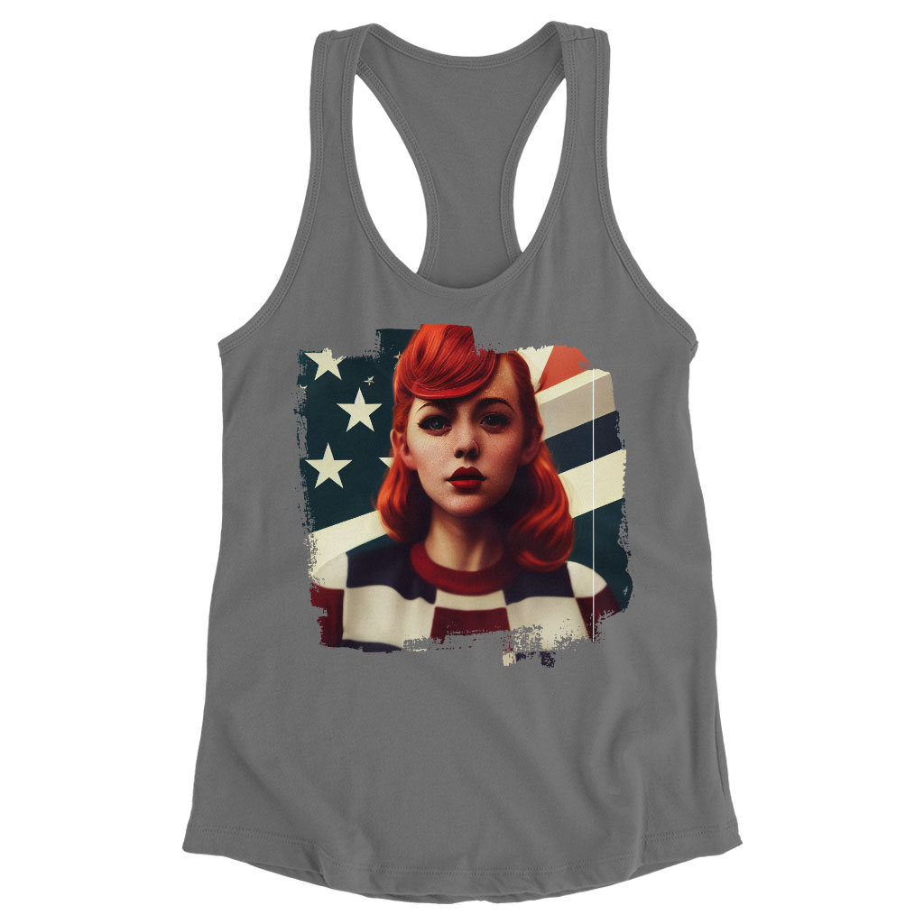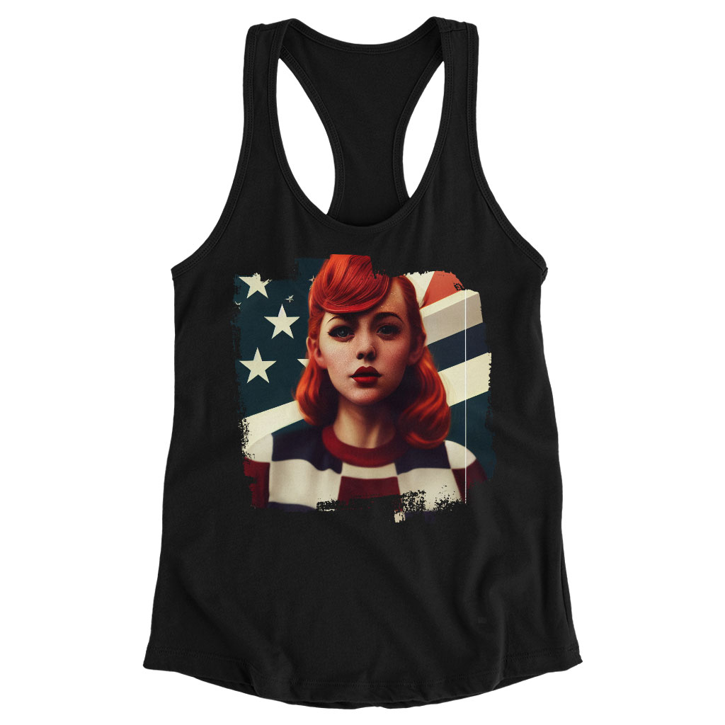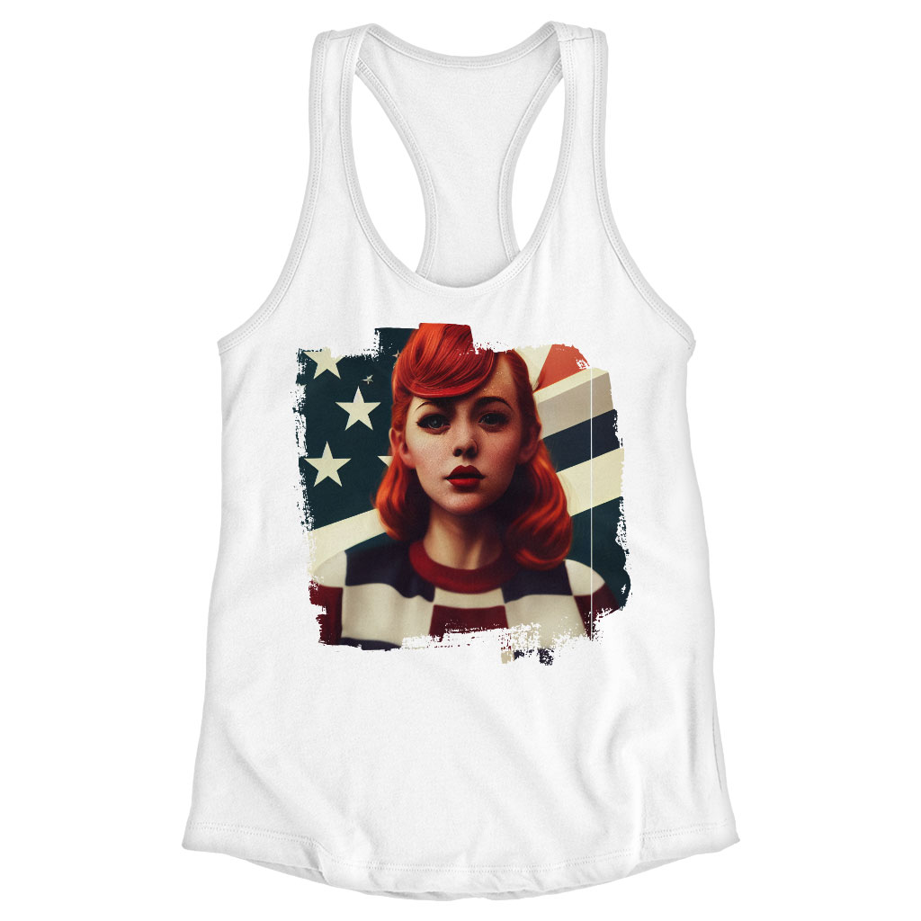 Girl Red Hair American Racerback Tank – Patriotic Tank – Art Workout Tank
