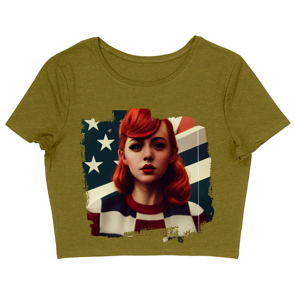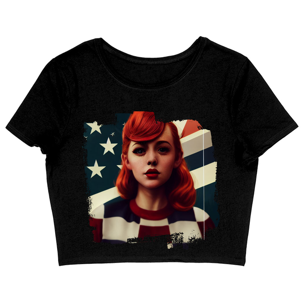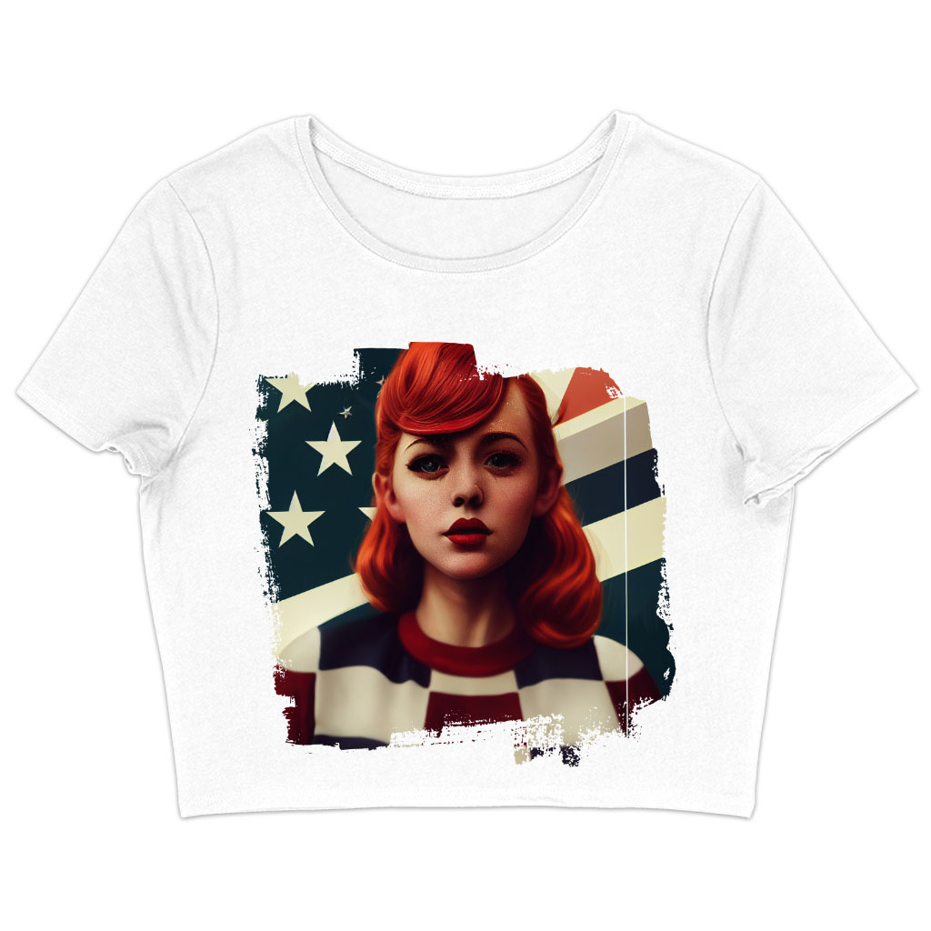 Girl Red Hair American Women’s Cropped T-Shirt – Patriotic Crop Top – Art Crop Tee Shirt