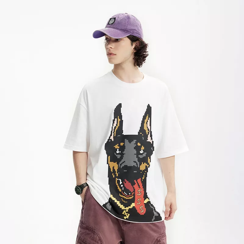- Glow-in-the-Dark Doberman Print: The standout feature of this t-shirt is the bold Doberman graphic that glows in the dark, adding an edgy and striking element to your look.