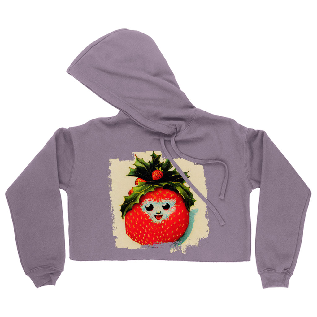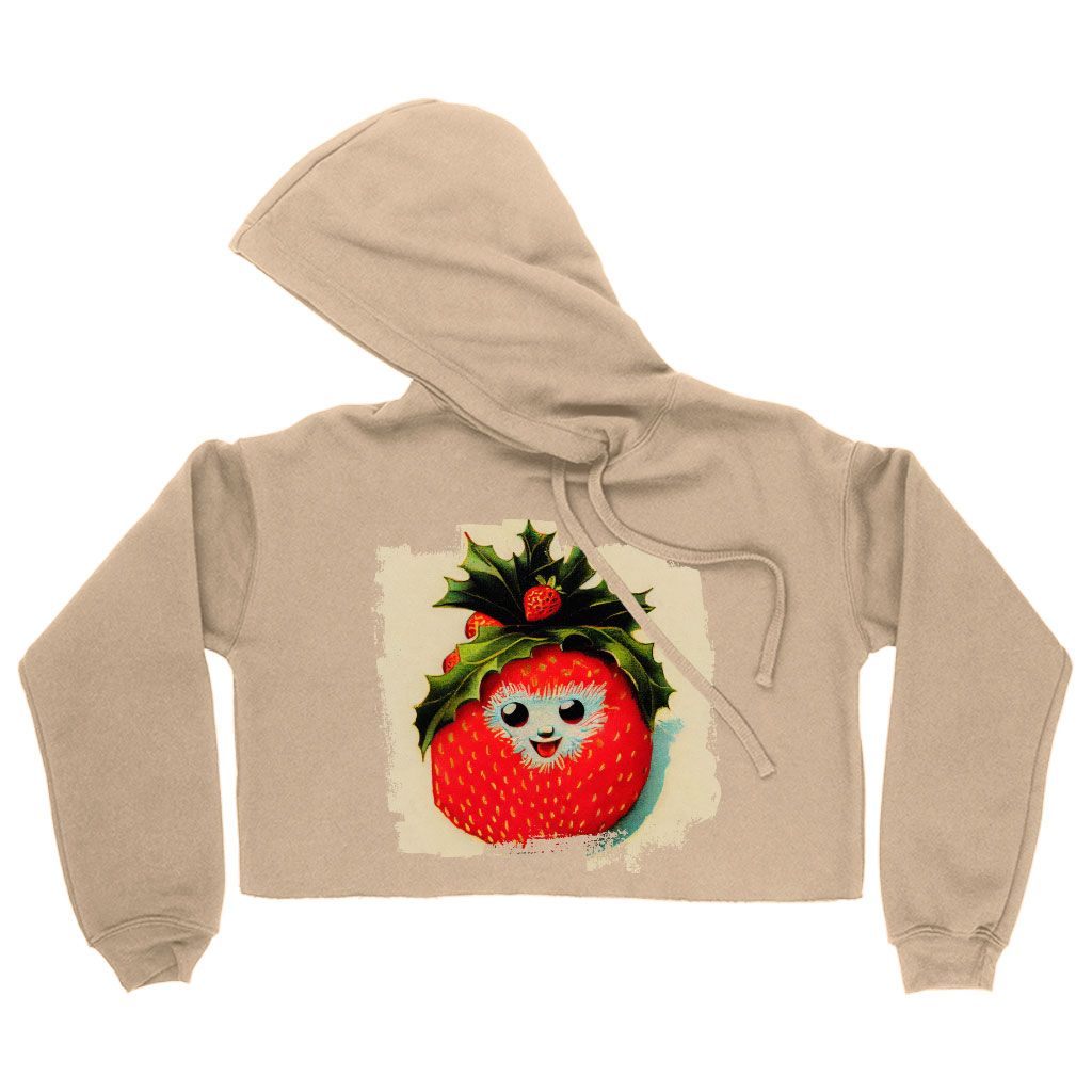 Happy Strawberry Women’s Cropped Hoodie – Berry Graphic Cropped Hoodie – Cool Hooded Sweatshirt