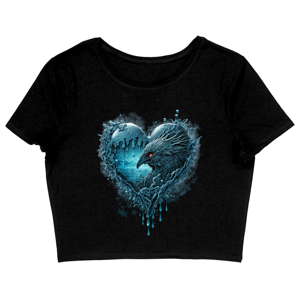 Heart Design Women’s Cropped T-Shirt – Ice Print Crop Top – Graphic Cropped Tee