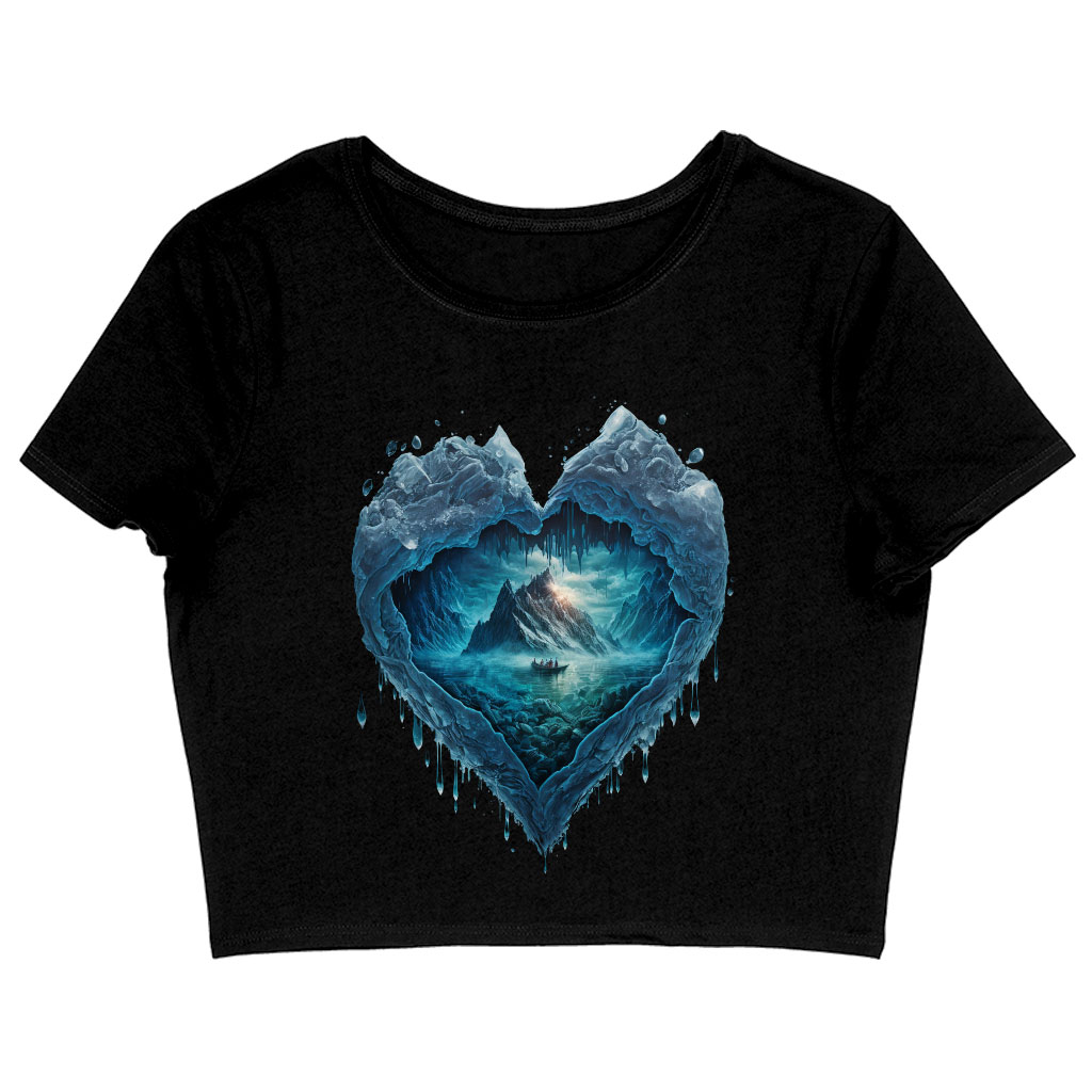 Heart Print Women’s Cropped T-Shirt – Beautiful Crop Top – Ice Print Cropped Tee
