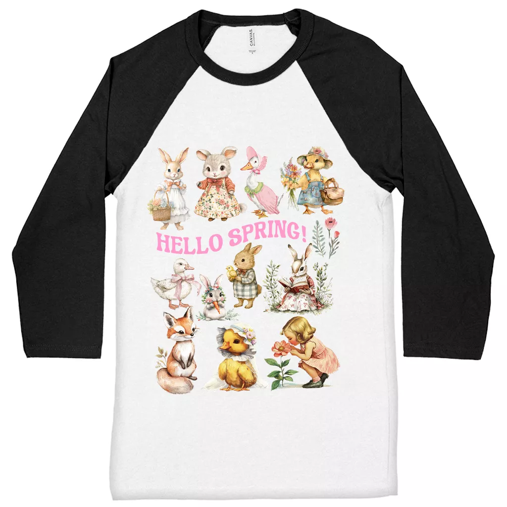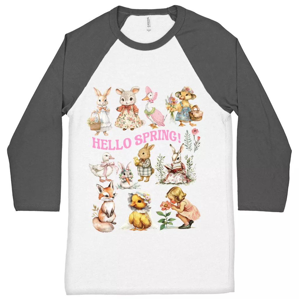 Hello Spring Baseball T-Shirt – Baby Animals 3/4 Sleeve – Vintage Raglan Jersey Shirt