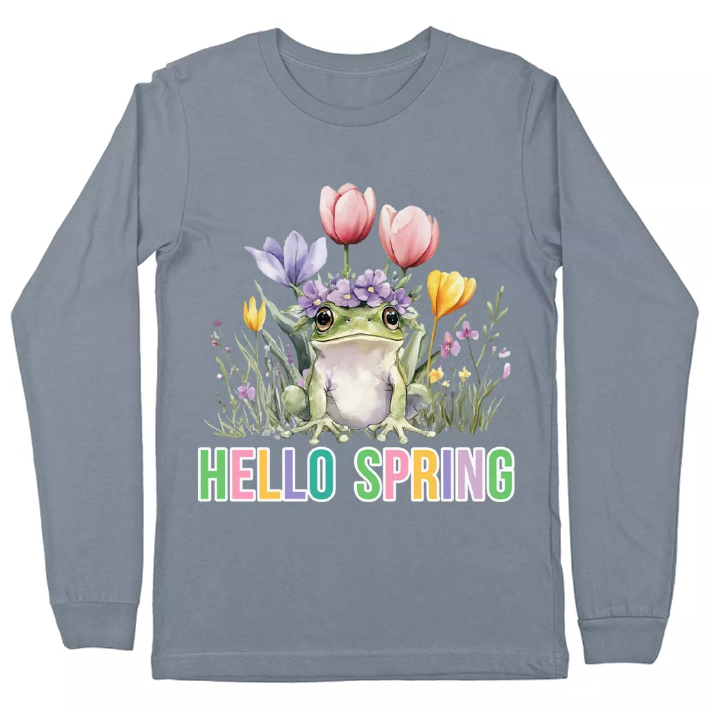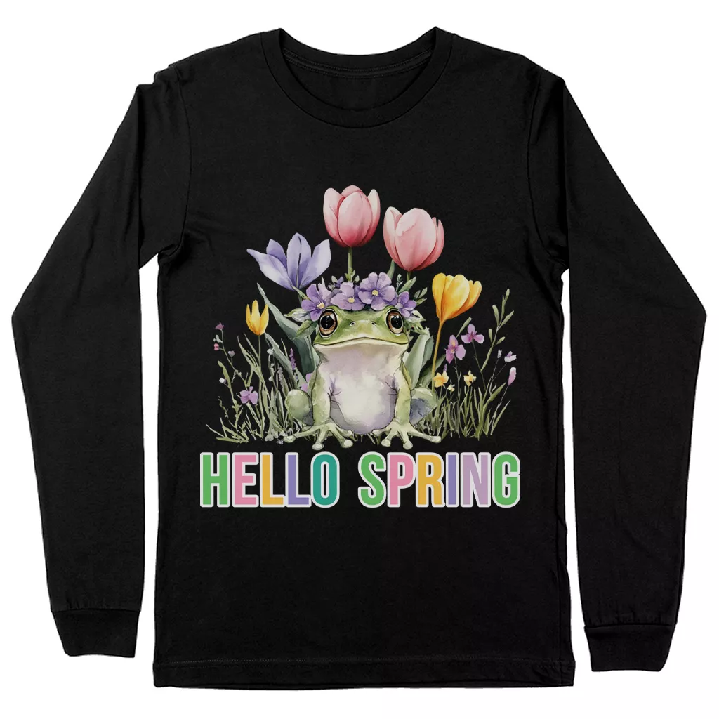 Hello Spring Frog Long Sleeve T-Shirt – Cute Frog T-Shirt – Springtime Basic Tee