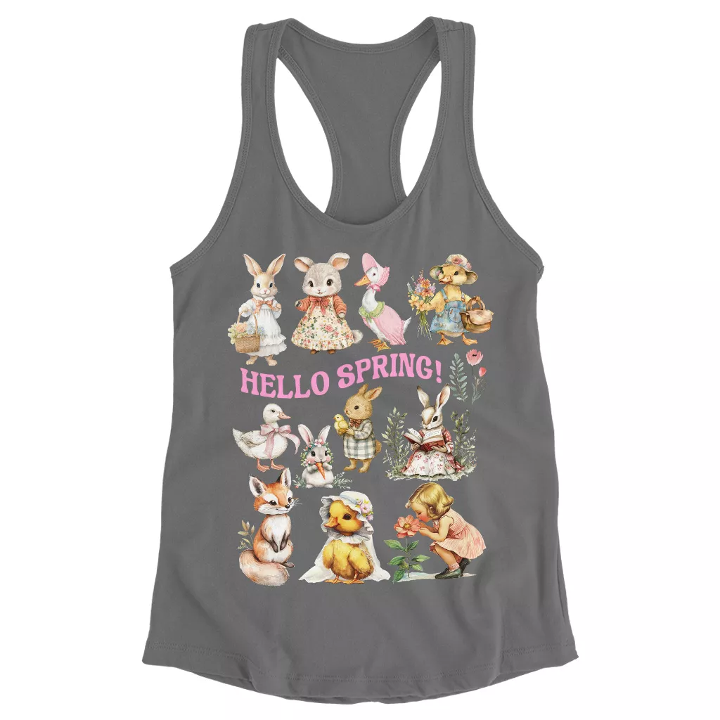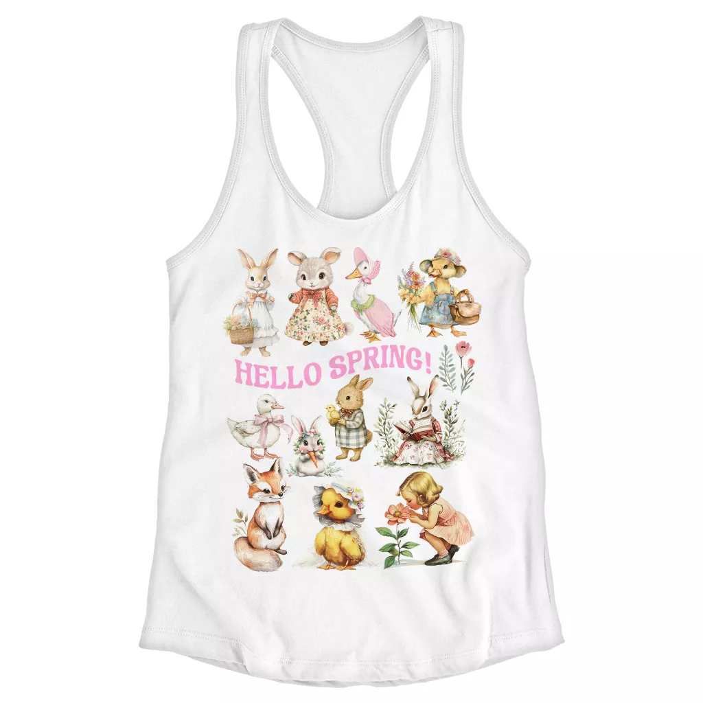Hello Spring Racerback Tank – Vintage Tank Top – Baby Animals Tank