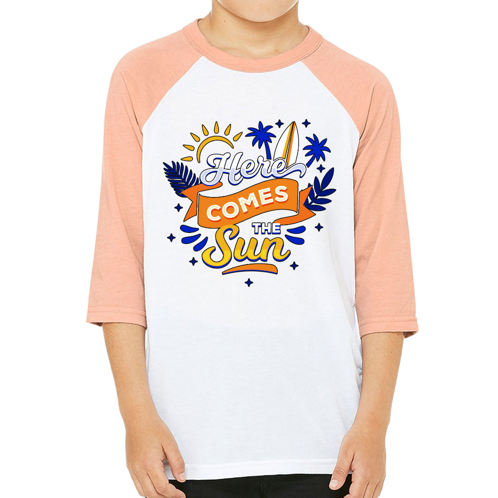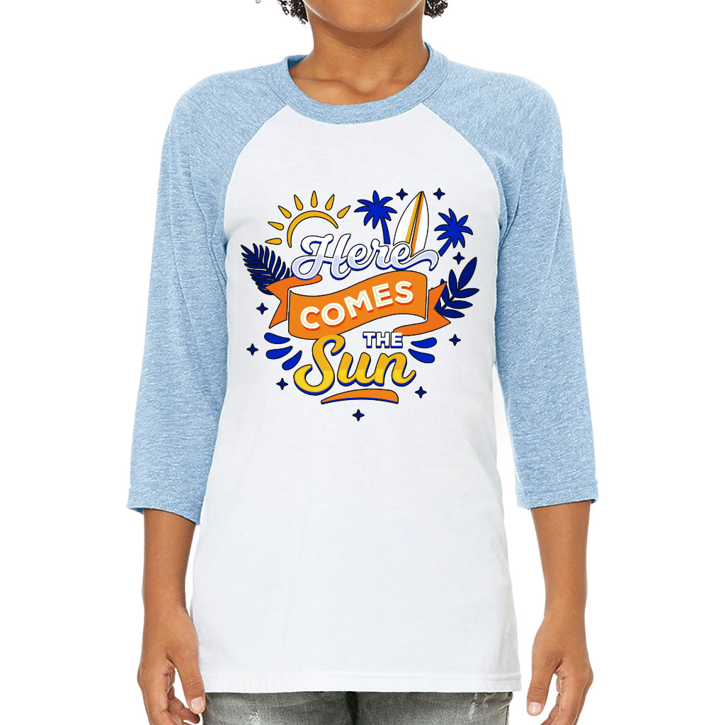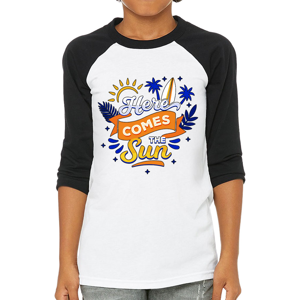 Here Comes the Sun Kids’ Baseball T-Shirt – Cute 3/4 Sleeve T-Shirt – Themed Baseball Tee