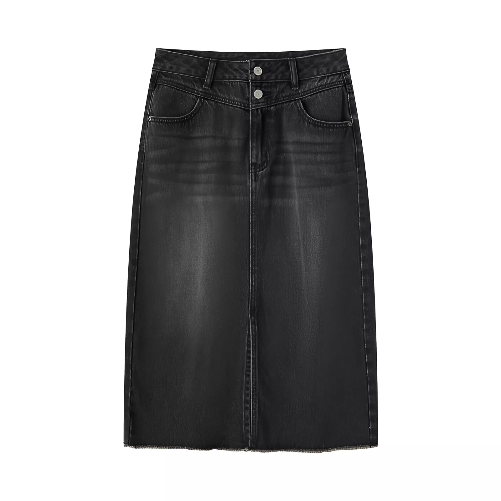 Elevate your wardrobe with this stylish high-waisted denim skirt, designed for the modern woman who values both comfort and fashion. This straight-cut skirt features a flattering empire waistline and a subtle slit, adding a touch of edgy elegance. The classic denim fabric, made from a blend of cotton and lyocell, ensures durability while keeping you cool and comfortable. Perfect for both casual and semi-formal occasions, this versatile skirt is a must-have for your spring and summer collection.