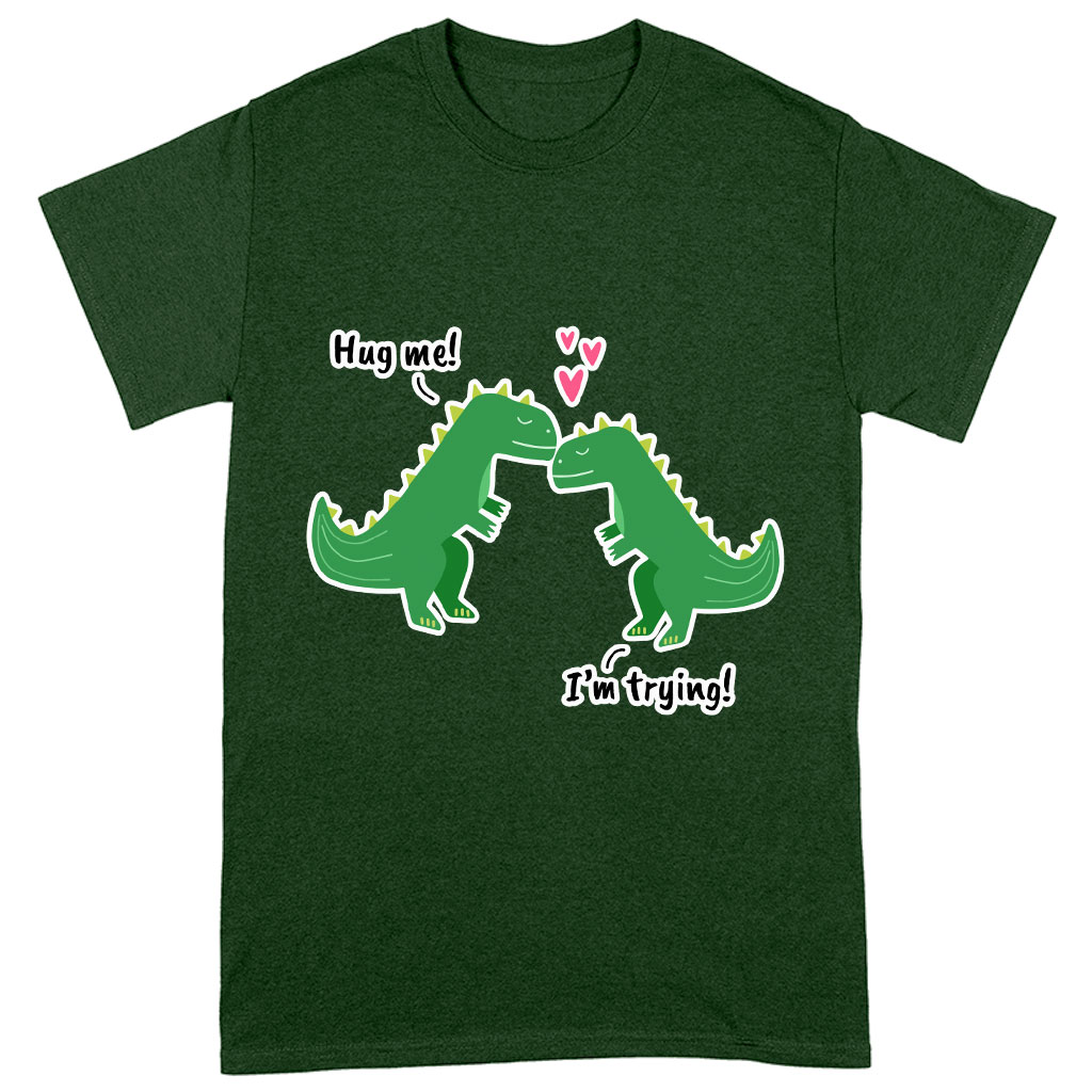 Hug Me Heavy Cotton T-Shirt – Dinosaur Tee Shirt – Funny Design T-Shirt