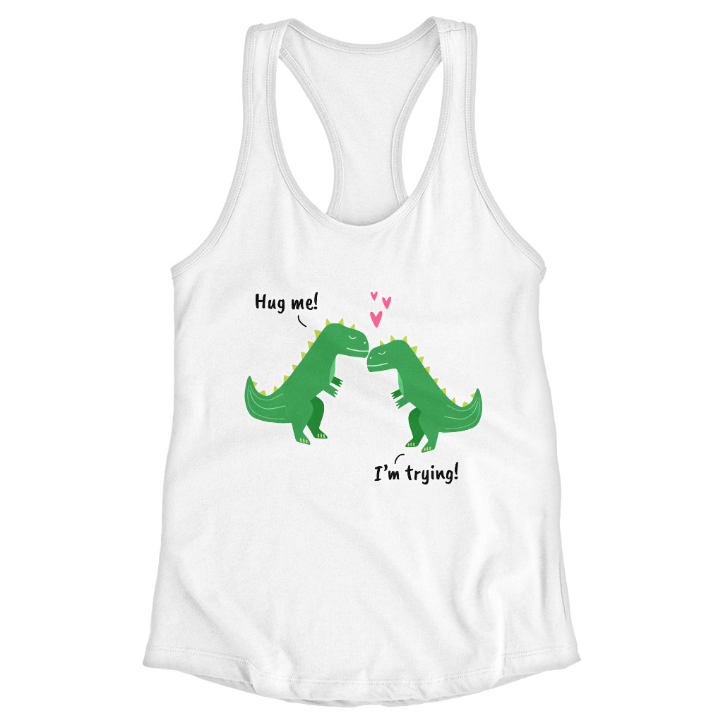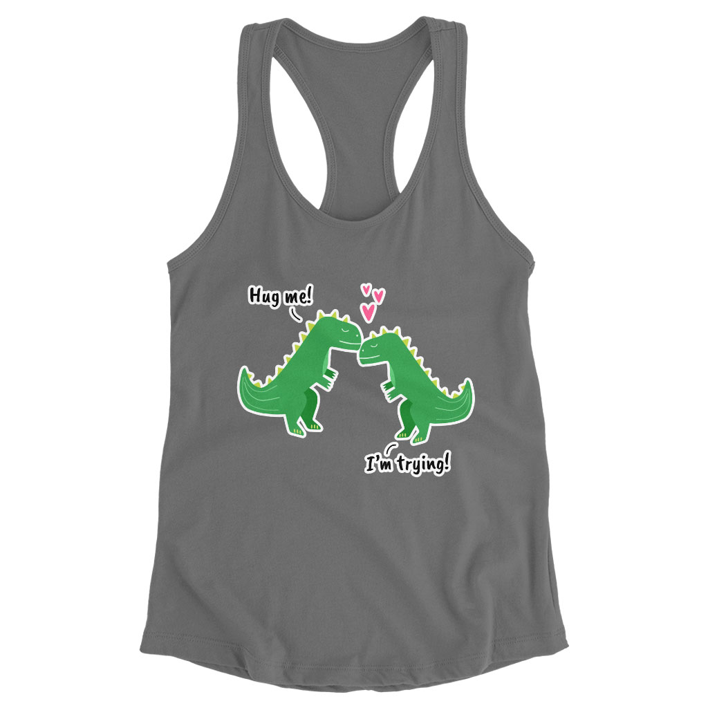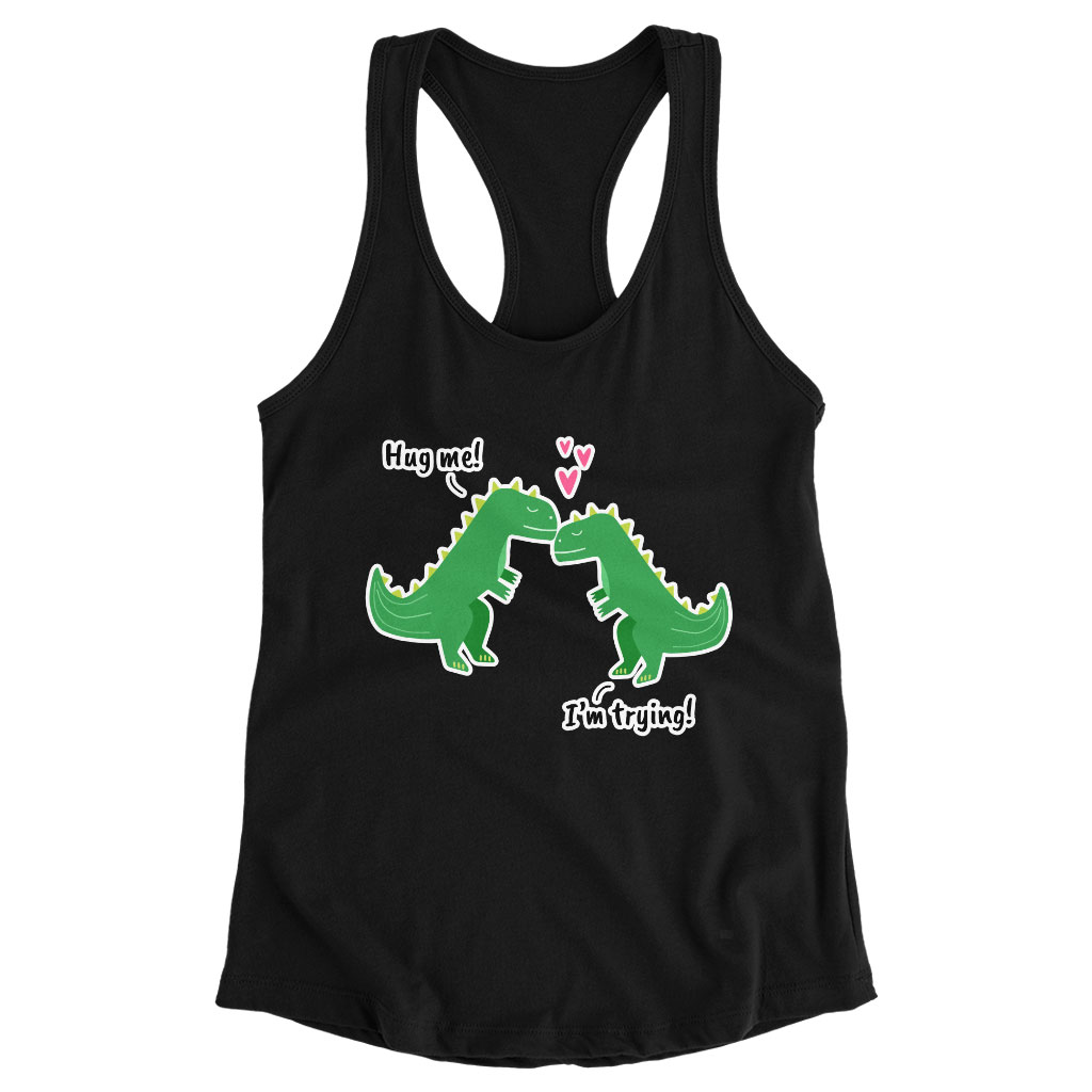Hug Me Racerback Tank – Dinosaur Tank – Funny Design Workout Tank
