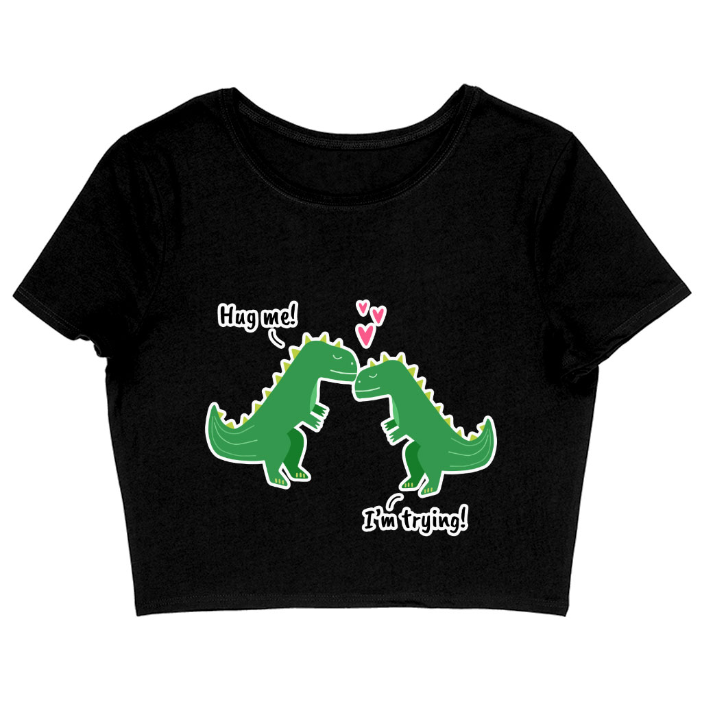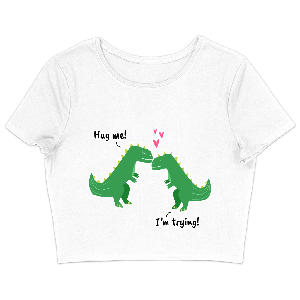 Hug Me Women’s Cropped T-Shirt – Dinosaur Crop Top – Funny Design Crop Tee Shirt