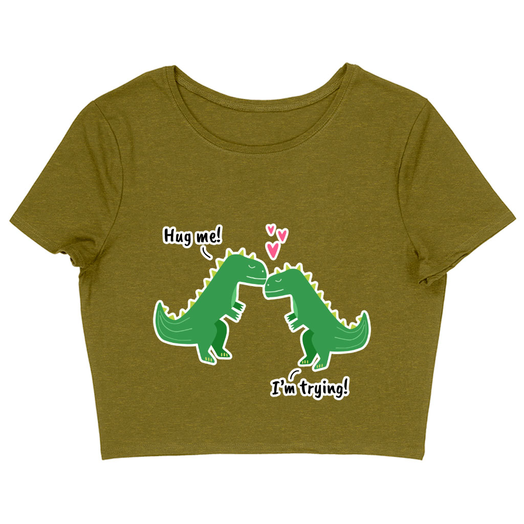 Hug Me Women's Cropped T-Shirt - Dinosaur Crop Top - Funny Design Crop Tee Shirt Clothing T-Shirts Color : Black|Heather Olive|White