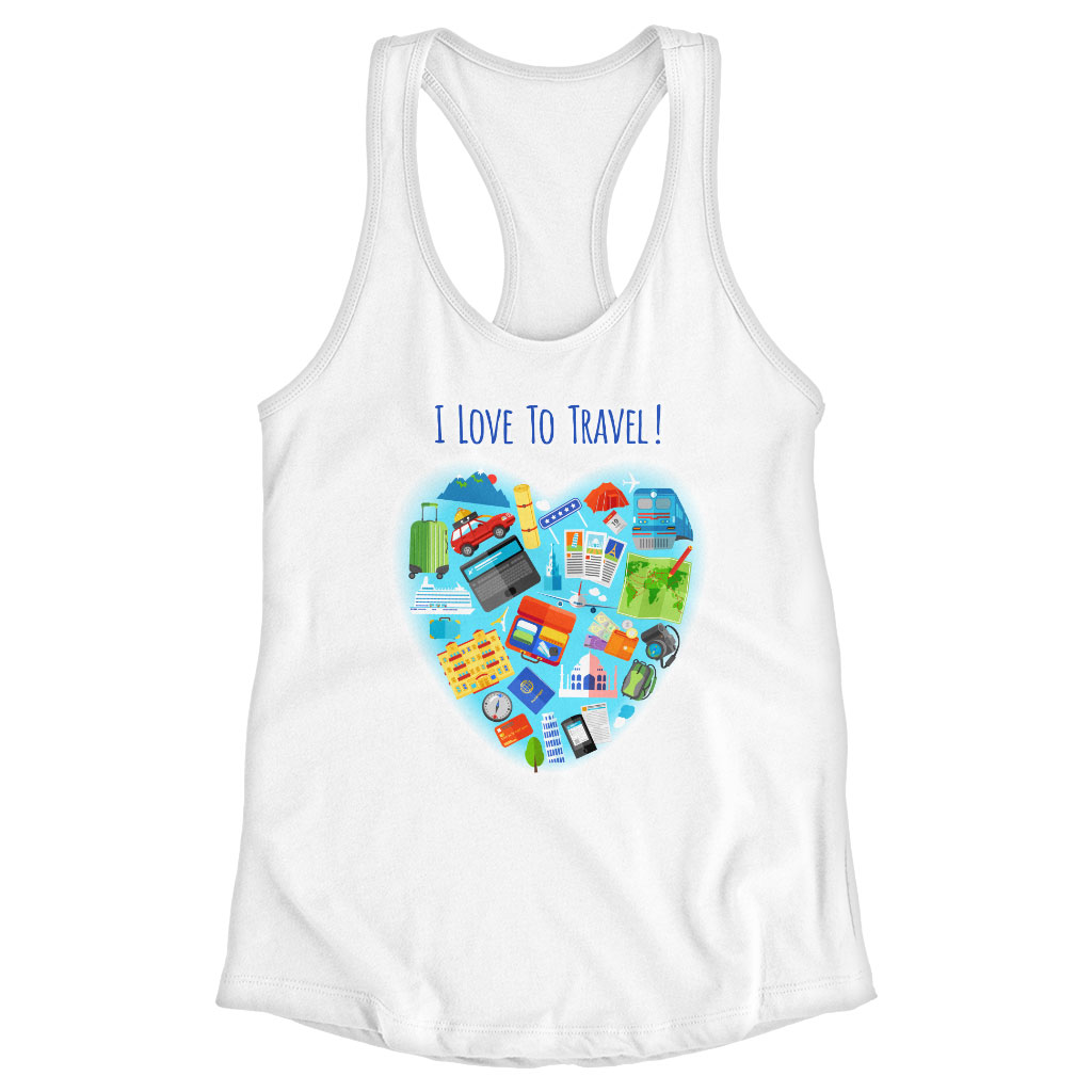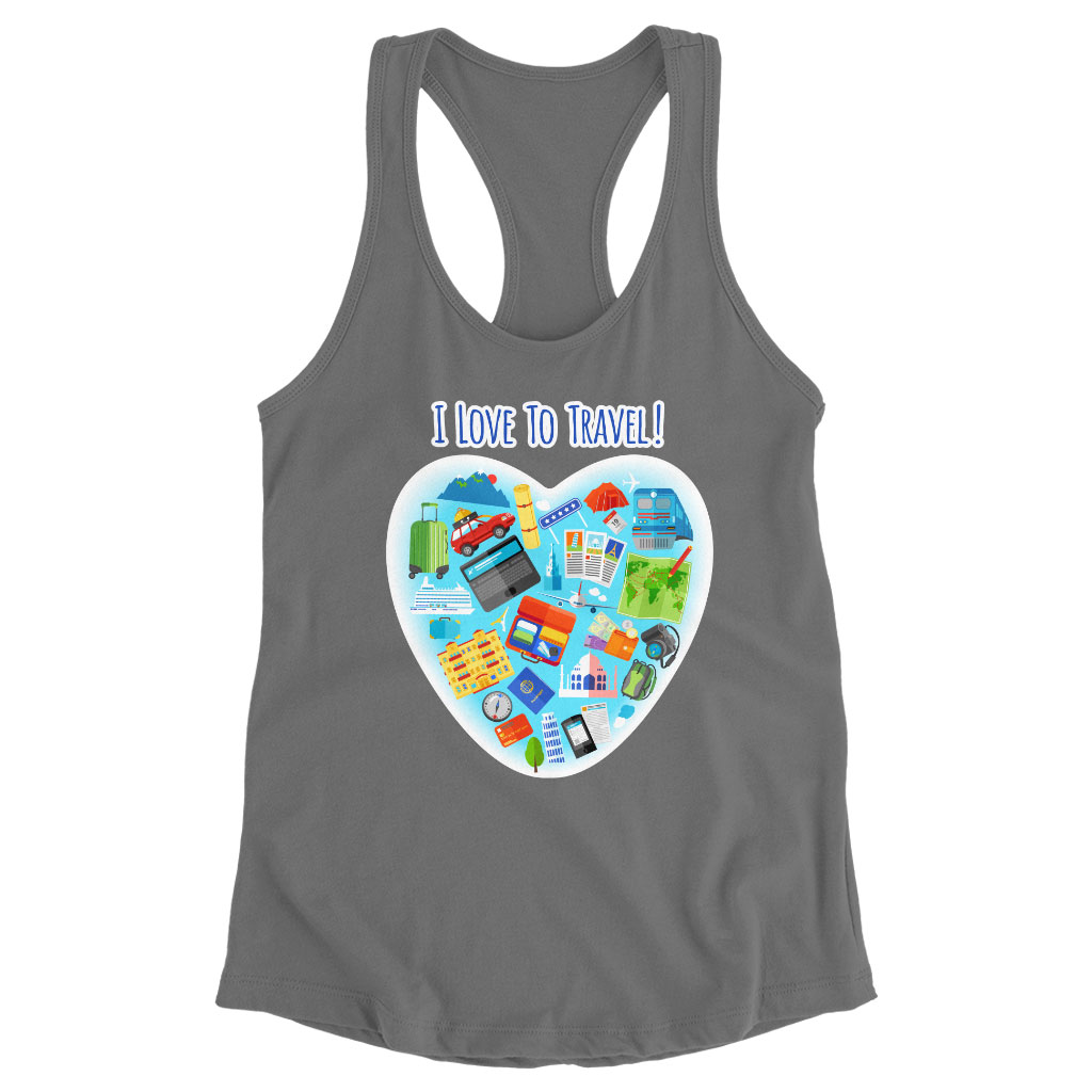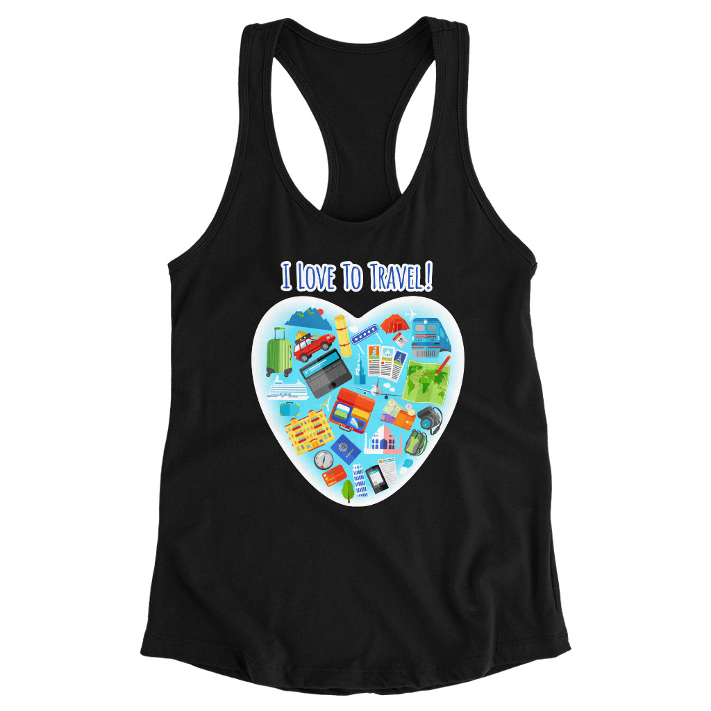 I Love to Travel Racerback Tank – Heart Tank – Colorful Workout Tank