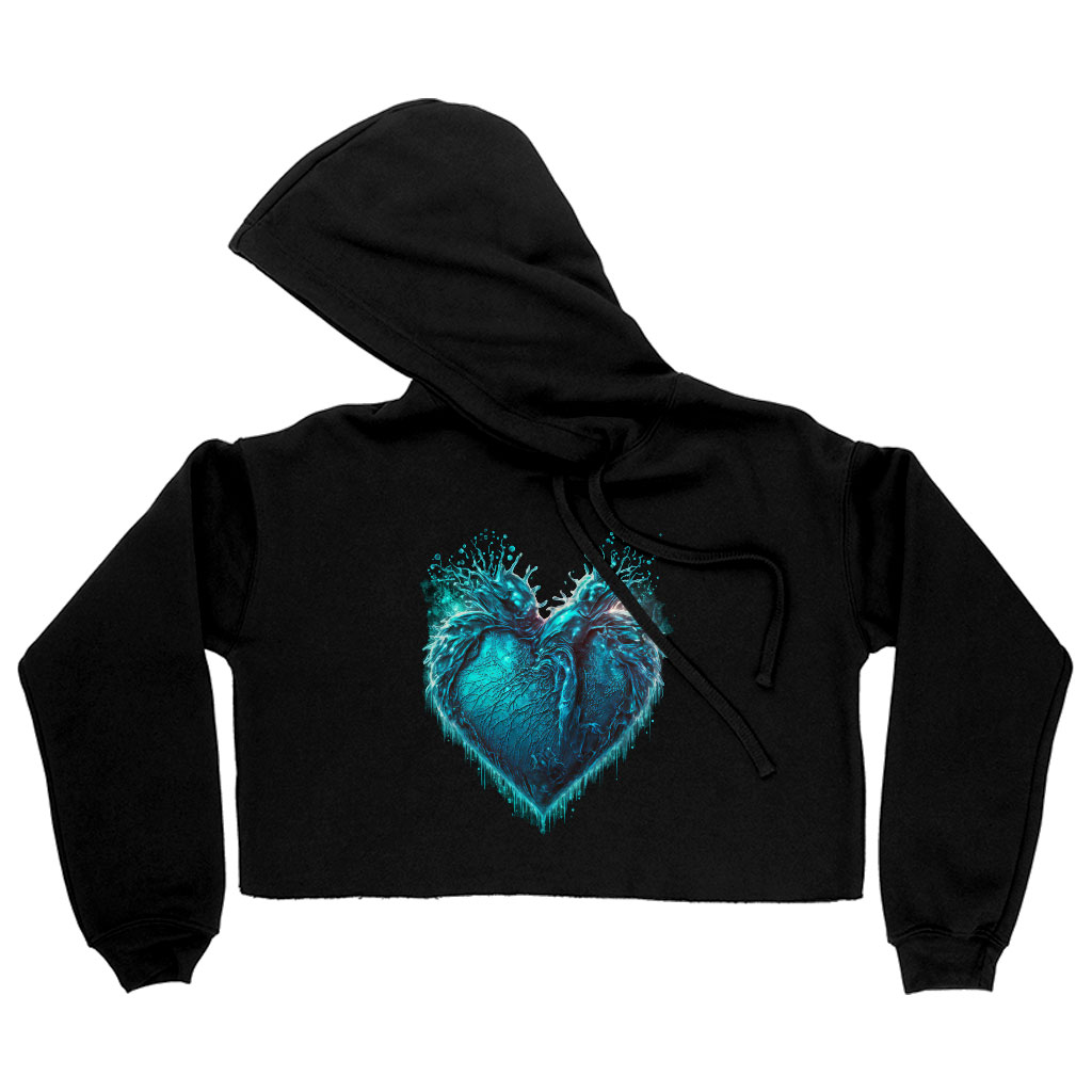 Ice Design Women’s Cropped Hoodie – Winter Art Cropped Hoodie – Ice Hooded Sweatshirt