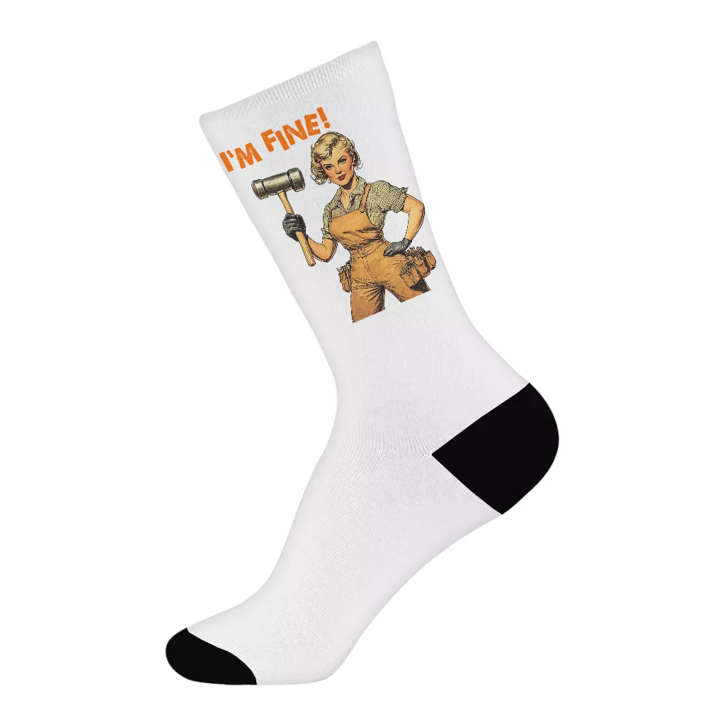 I’m Fine Unisex Socks – Funny Retro Socks – 60s Style Crew Socks